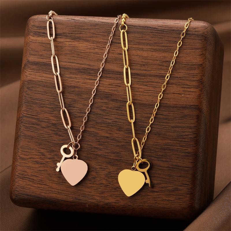 Collar de acero de titanio con colgante de amor que no se decolora, para mujer, combina con todo, estilo hip hop, alta gama, gran oferta transfronteriza, joyería de cadena de clavícula