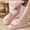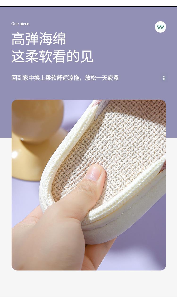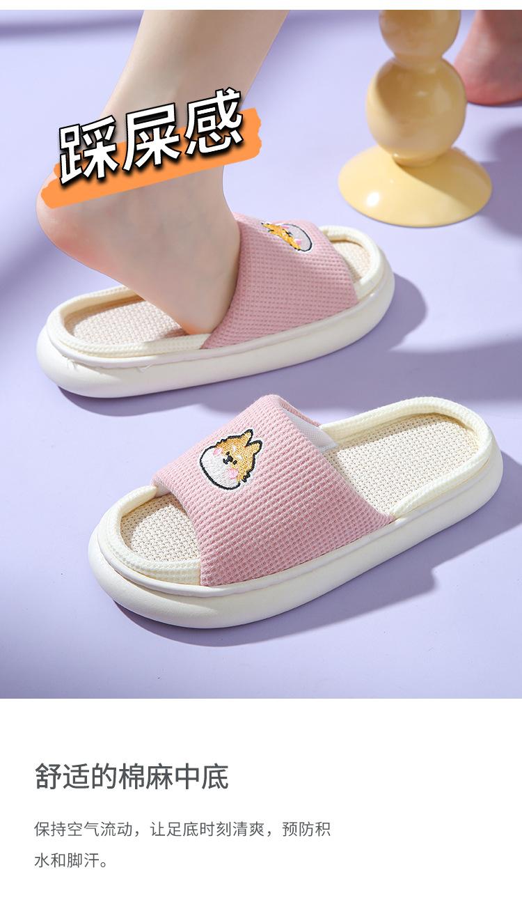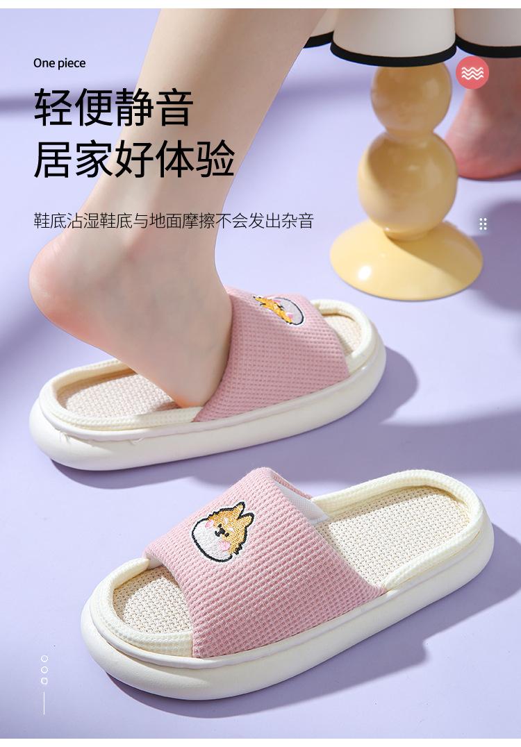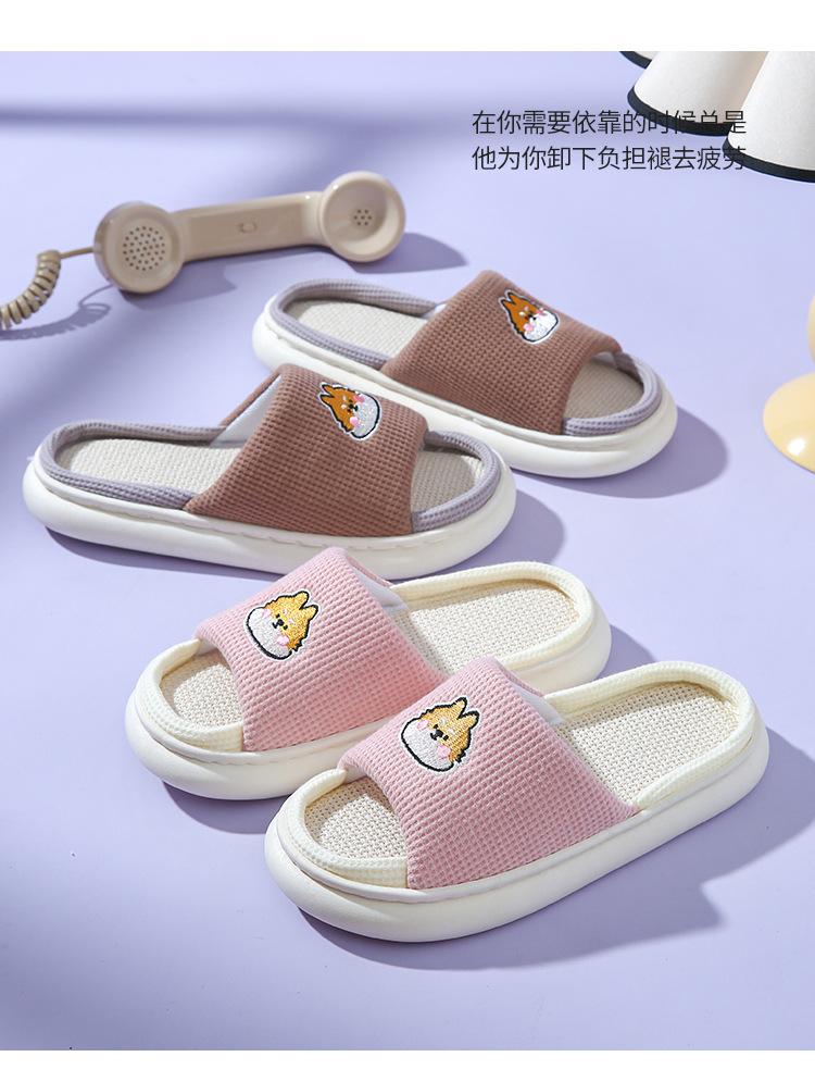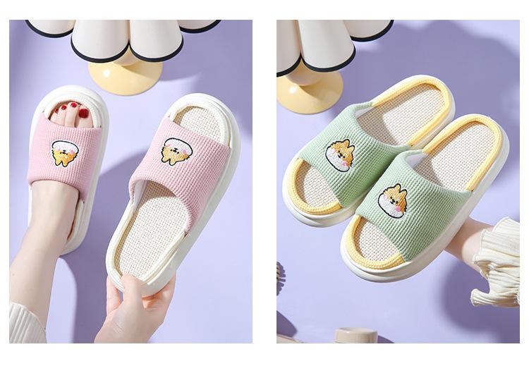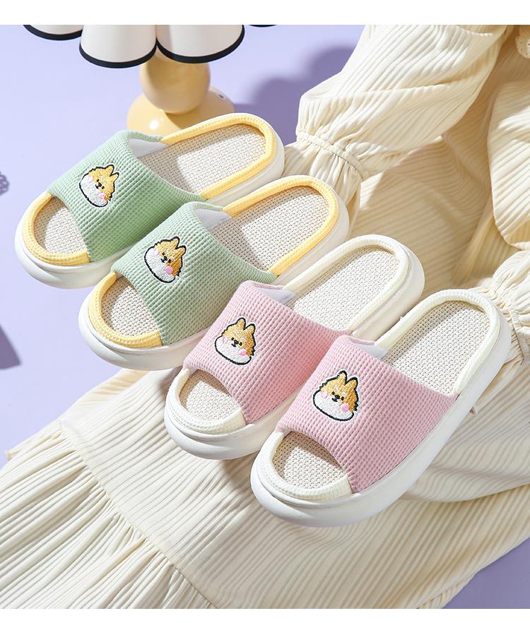 Pantuflas de lino con dibujos animados para mujer, cómodas, antideslizantes, con suela gruesa, para interiores y exteriores
