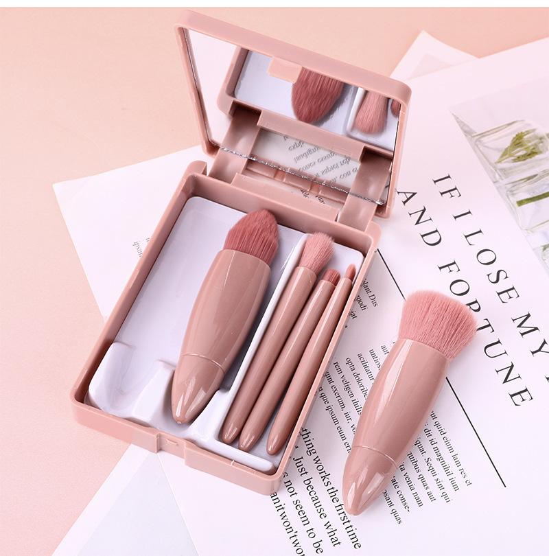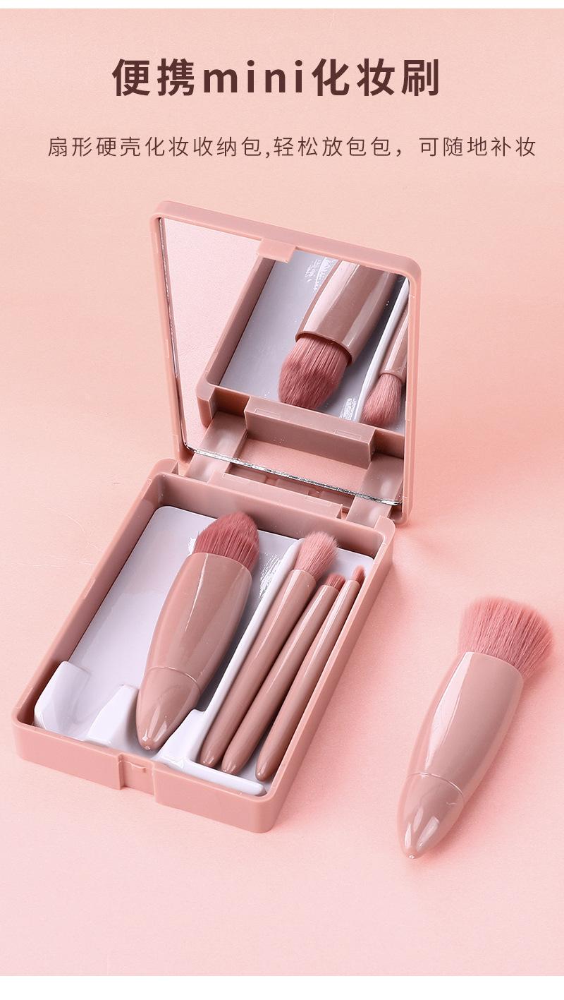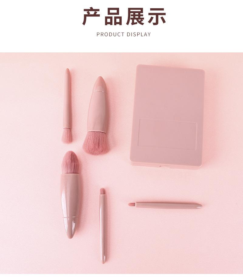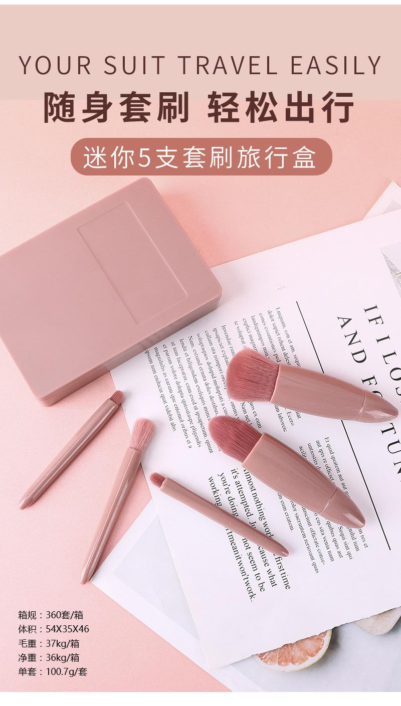 Lansiyi Mini brocha de maquillaje portátil Morandi en caja, 5 pinceles de maquillaje con espejo, brocha de maquillaje de pelo de nailon con pintura suelta