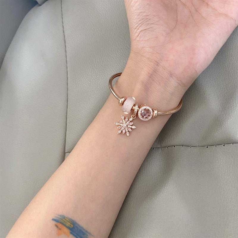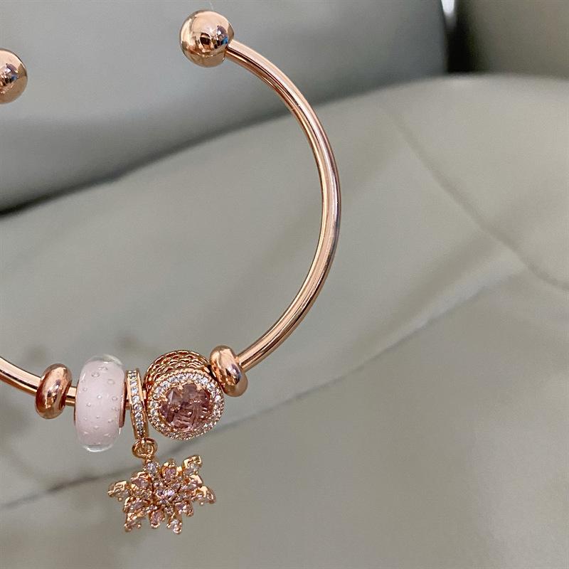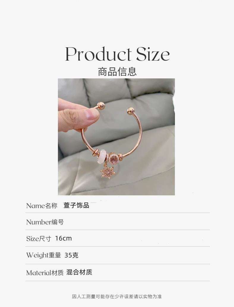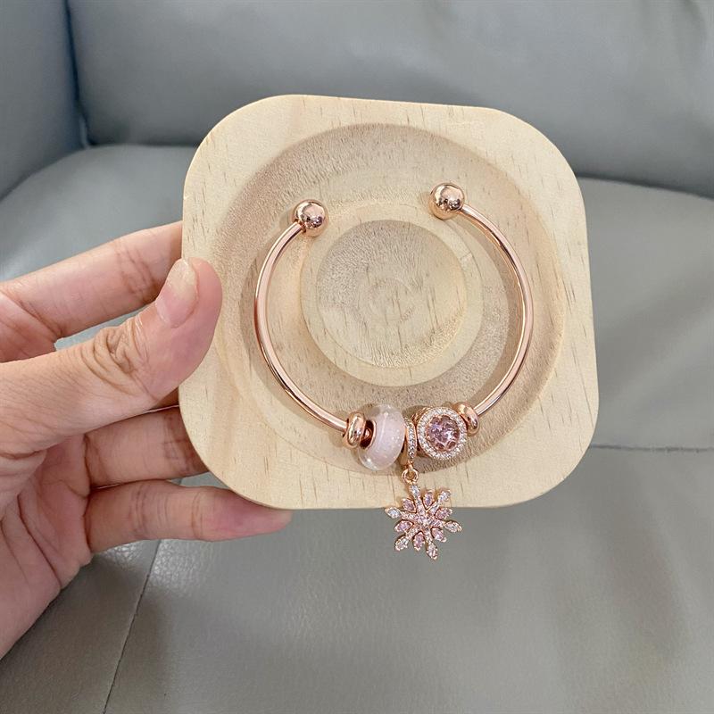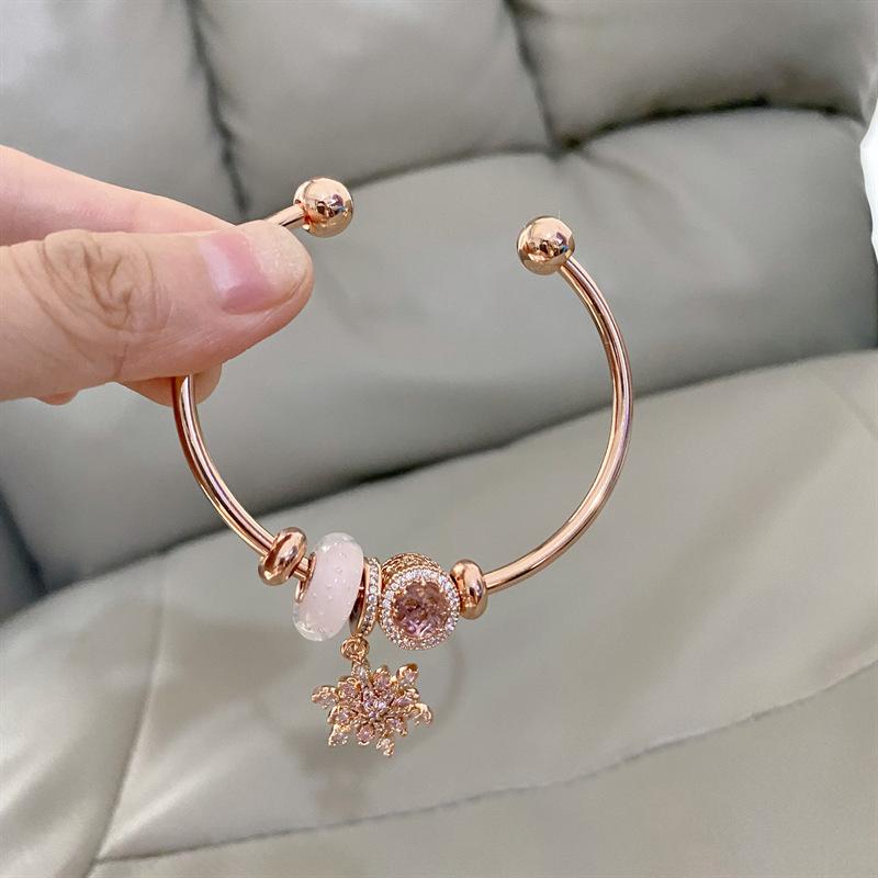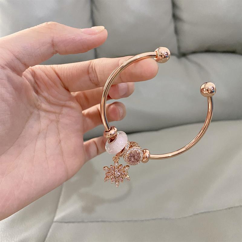 Pulsera de dijes estilo Panjia de lazo de oro rosa abierto para estudiante, pulsera de cristal para mujer, pulsera para combinar con todo para mujer