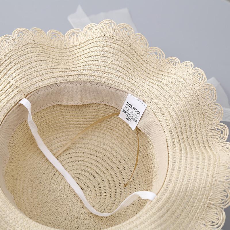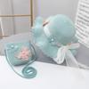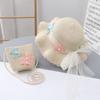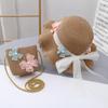 Sombrero protector solar para niños, conjunto de sombrero de paja y bolso para niña de verano, elegante sombrero de playa de princesa con encaje para niña