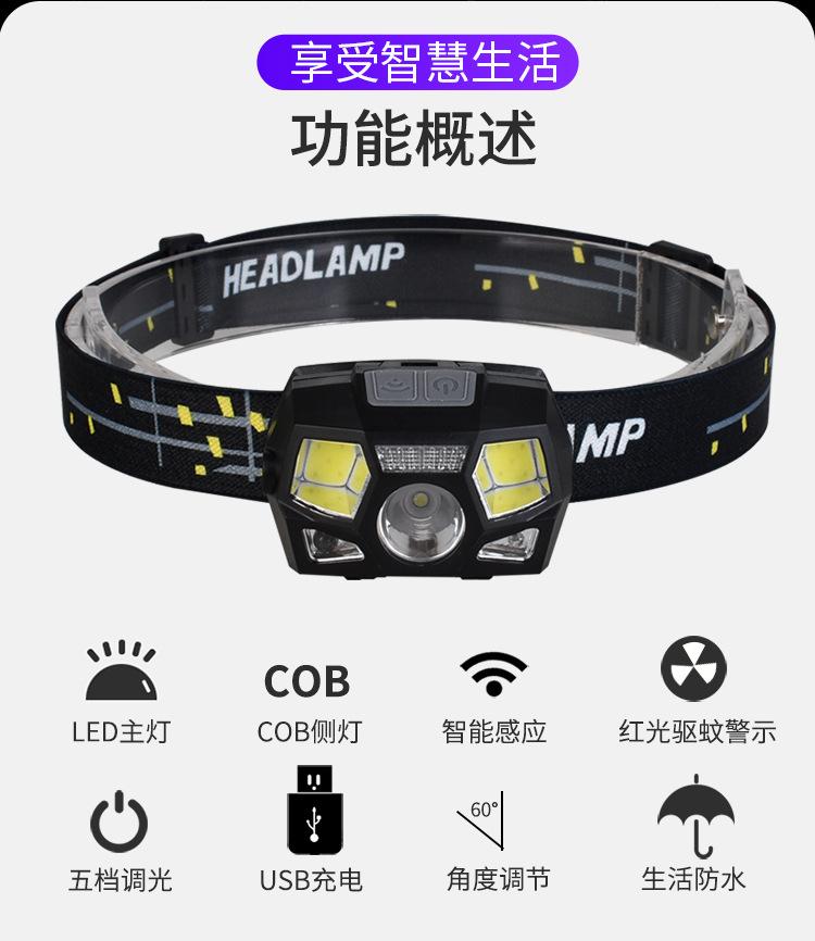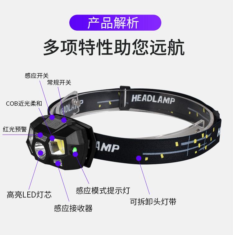 Inducción USB Carga Exterior Luz Fuerte Faro Super Brillante Led Impermeable Montado en la Cabeza Luz Nocturna para Pesca Faro de Plástico