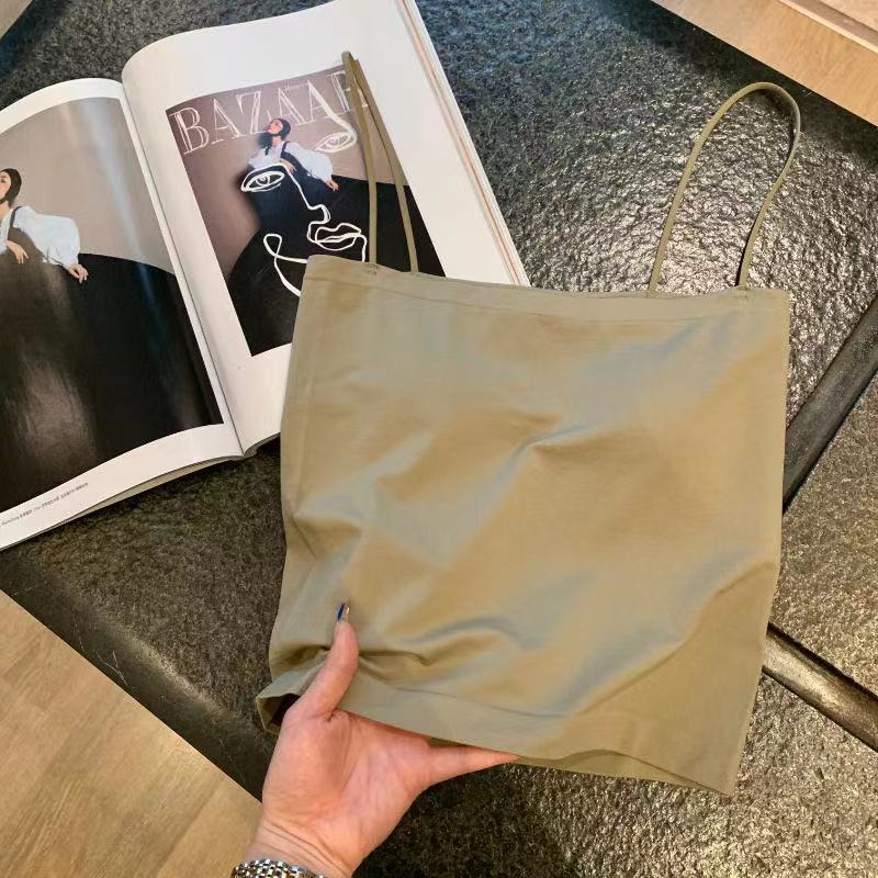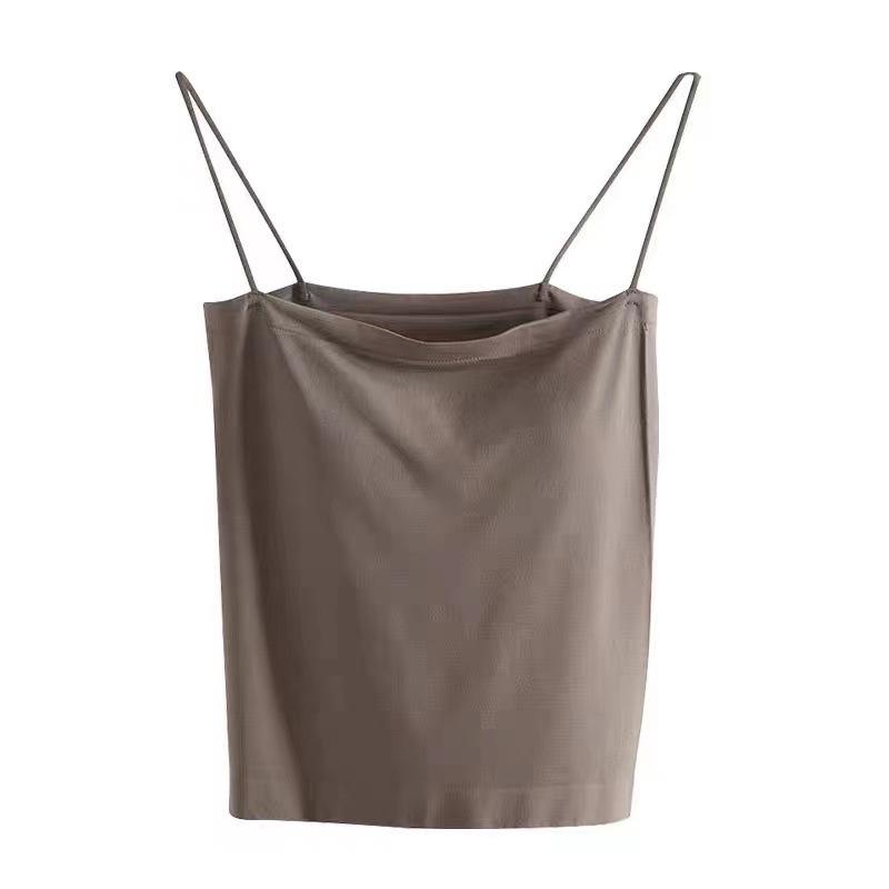Camisola de Color Sólido para Mujer Verano Top Exterior con Almohadillas para el Pecho, Sin Aros, Envoltura de Pecho Sin Costuras, Tirantes Finos, Top de Tubo para Fondo