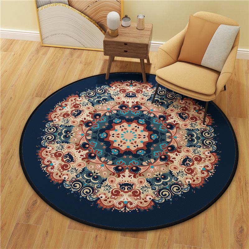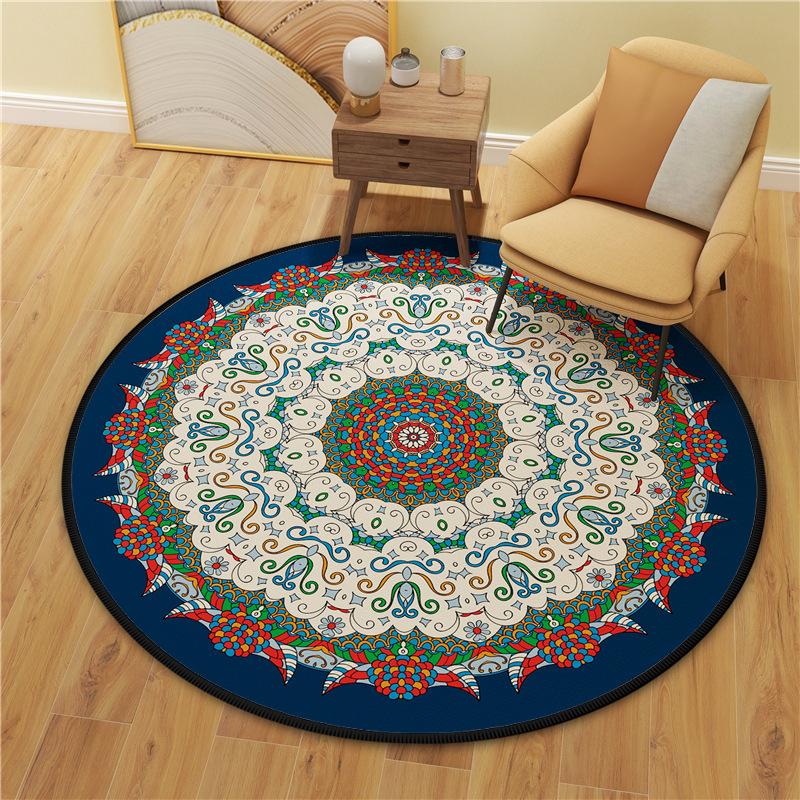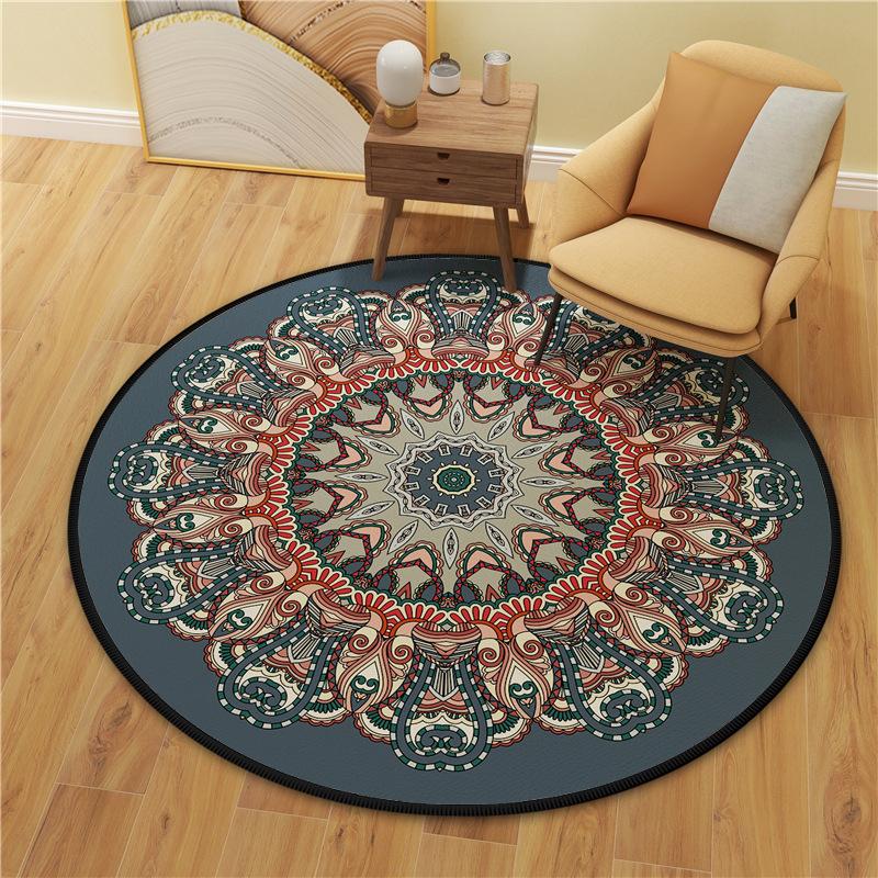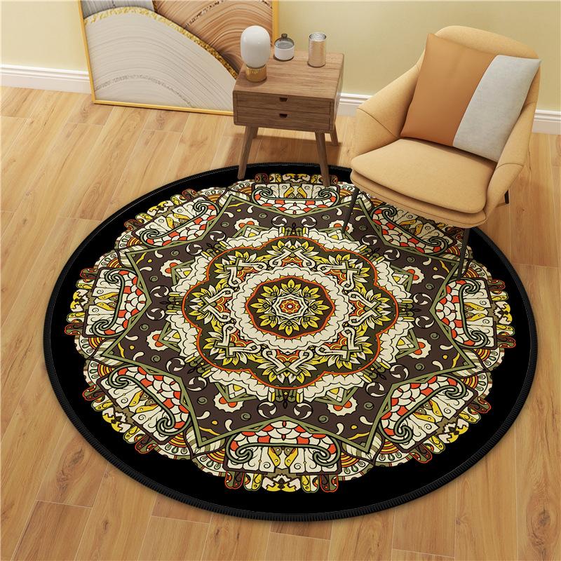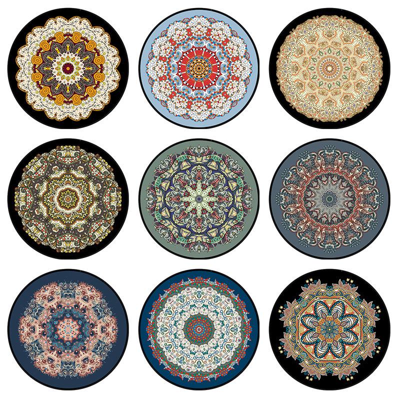 Alfombra redonda de terciopelo de cristal, pequeña y fresca, con estampado de mandala, para dormitorio, sala de estar y hogar, de una generación transfronteriza.