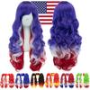 Peluca de animación de AliExpress, peluca de comercio exterior europea y americana, 70 cm de largo, cabello rizado, tocado de escenario de color para cosplay.