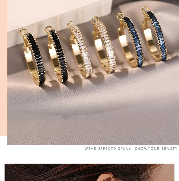Zircon Circle Earrings-Black, Zircon Circle Earrings-White, Zircon circle earrings-blue