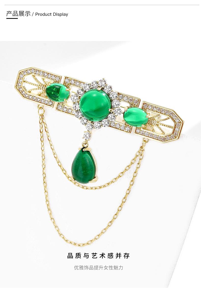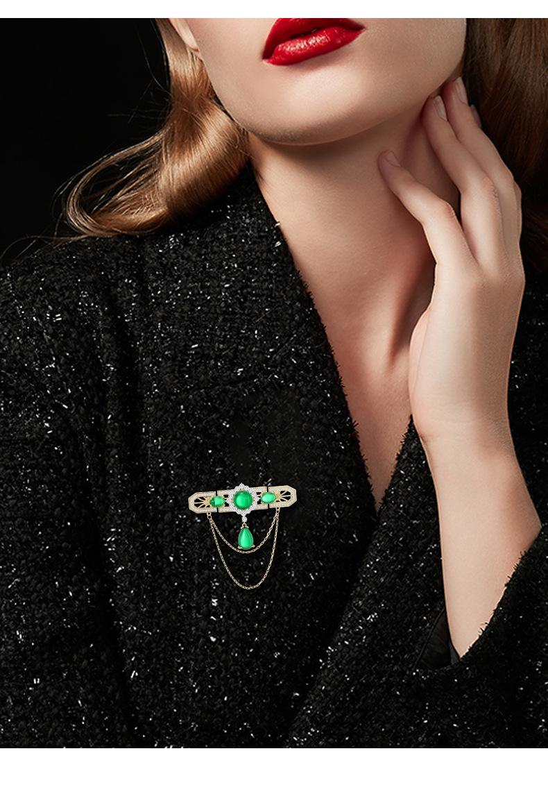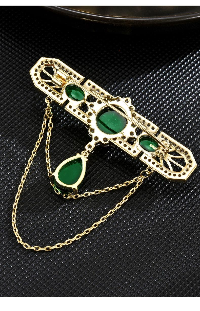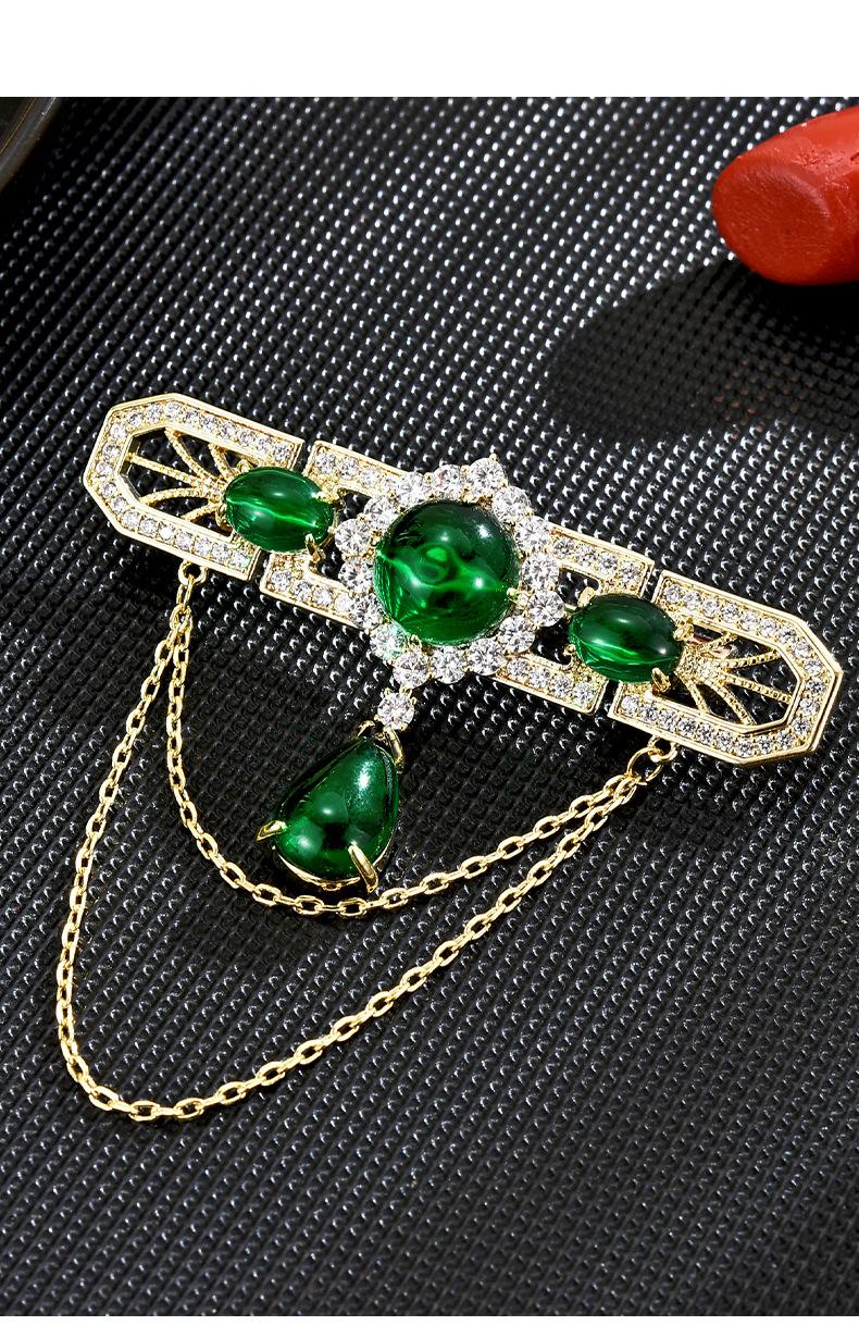 Nuevo broche de abrigo con borla de esmeralda clásico, elegante y exquisito de lujo de estilo europeo, accesorios antiexposición, entrega de una sola pieza