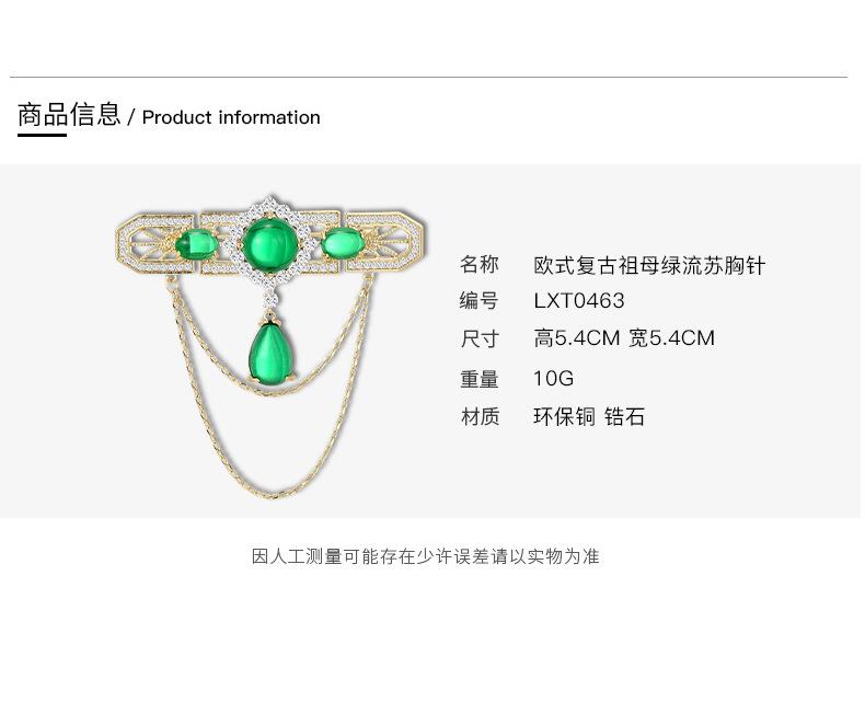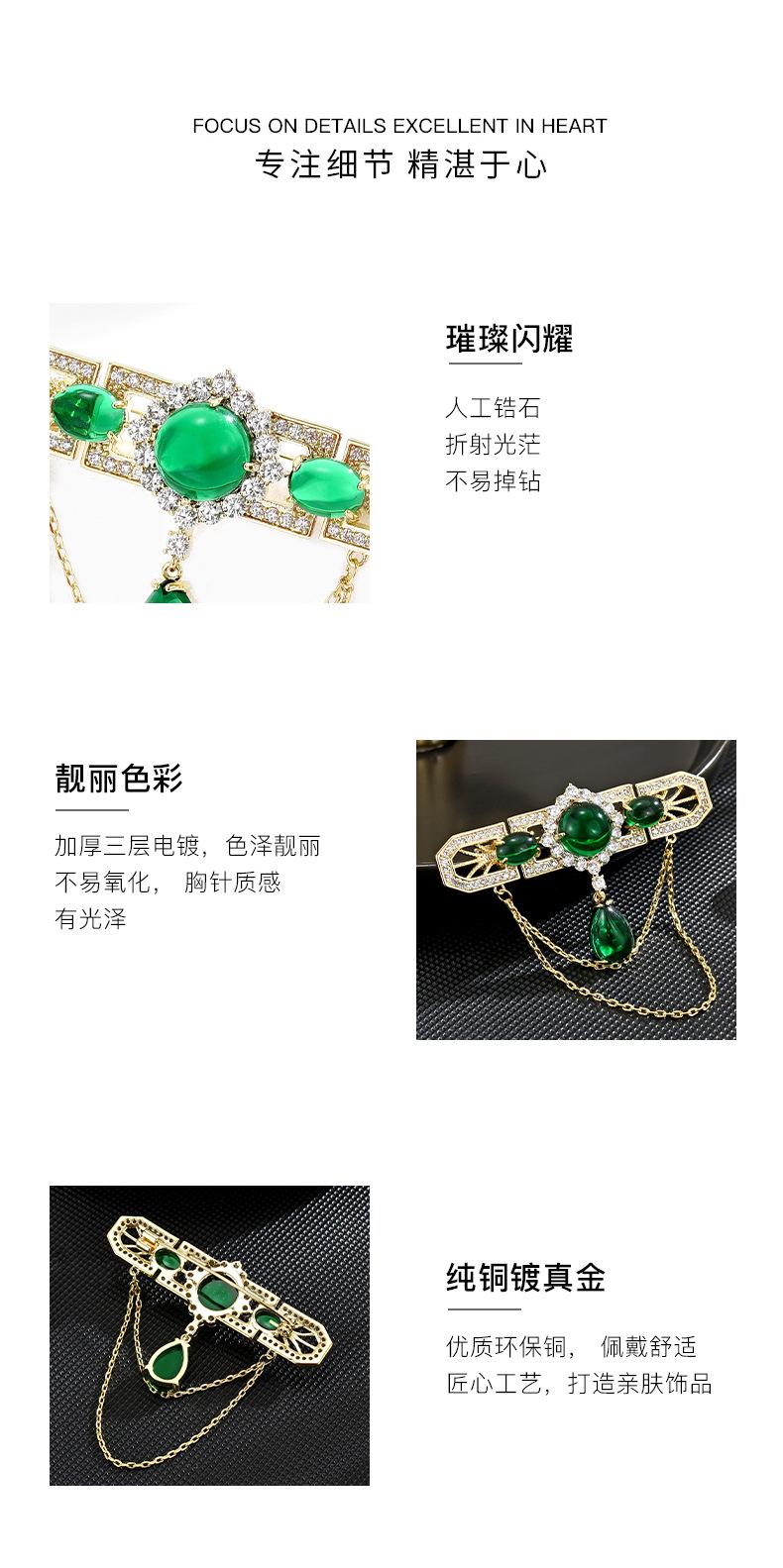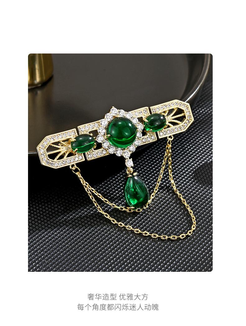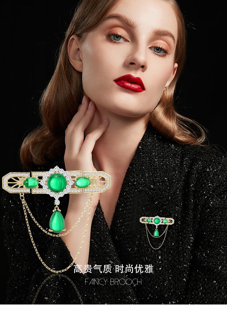 Nuevo broche de abrigo con borla de esmeralda clásico, elegante y exquisito de lujo de estilo europeo, accesorios antiexposición, entrega de una sola pieza