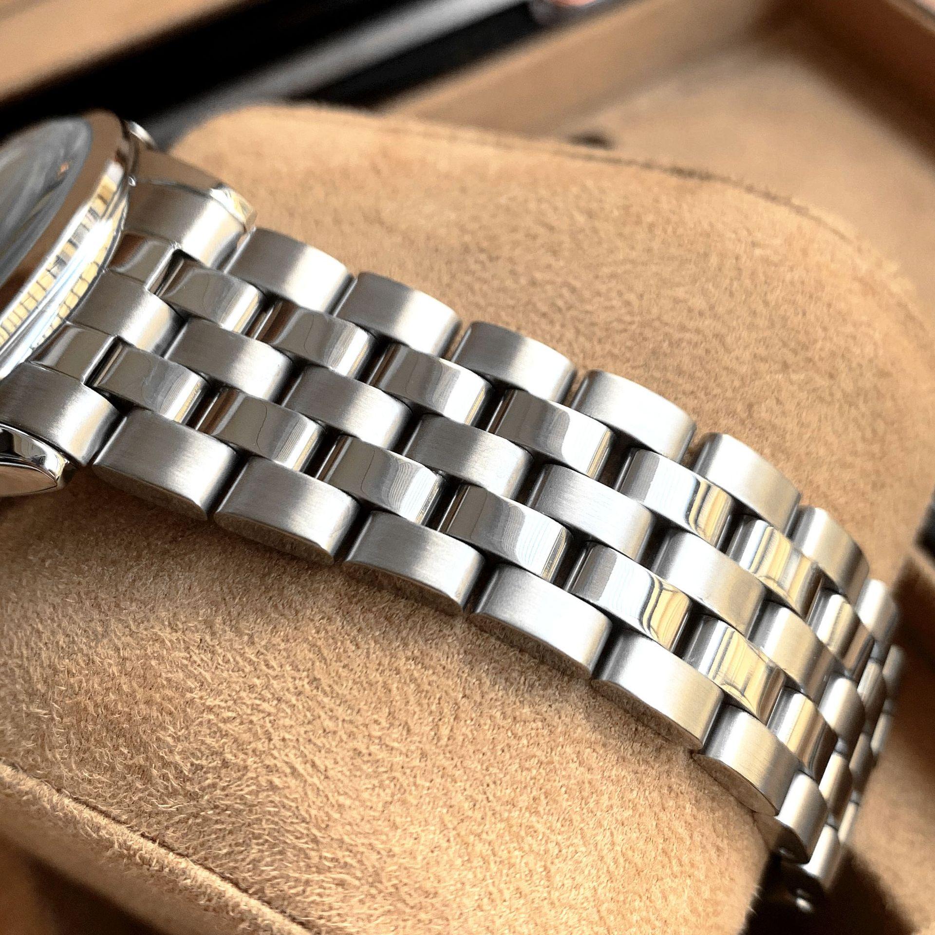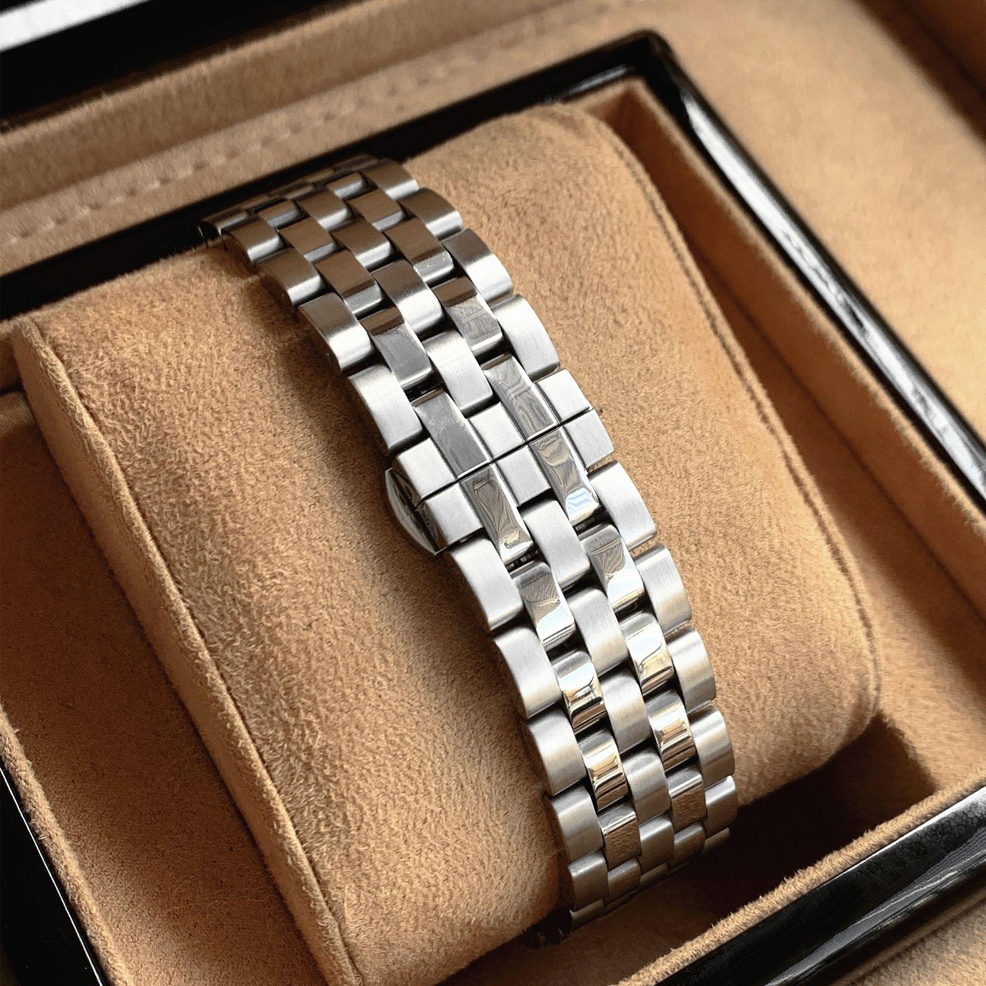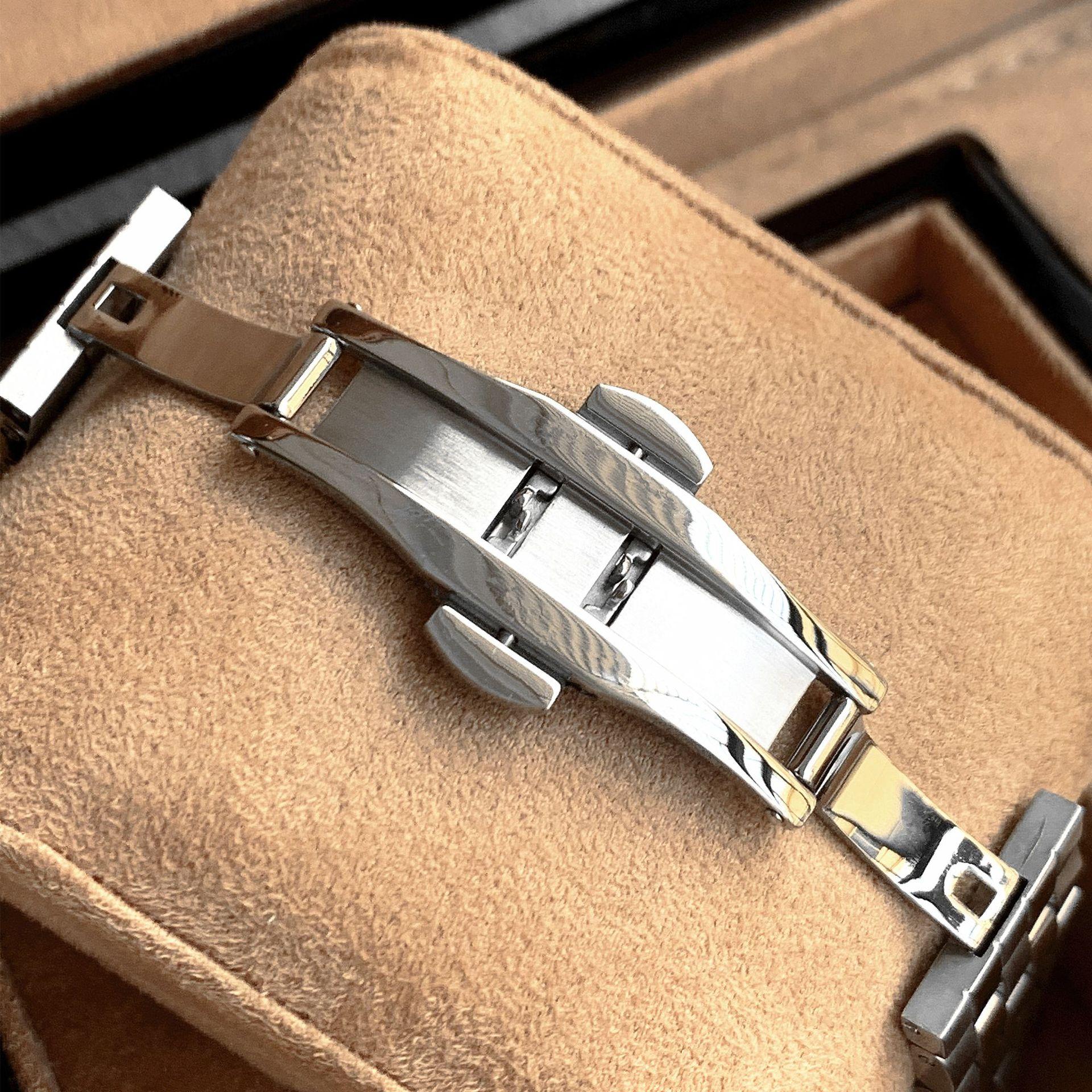 Banda de acero sólido de cinco Baht con hebilla mariposa de doble presión