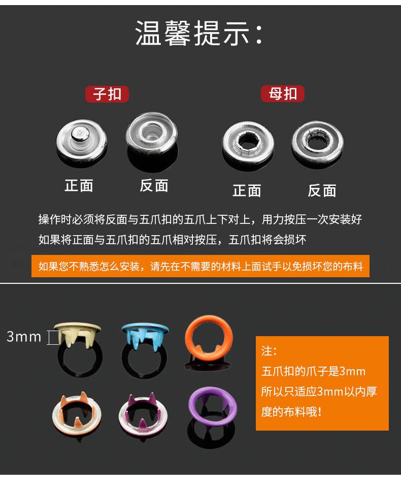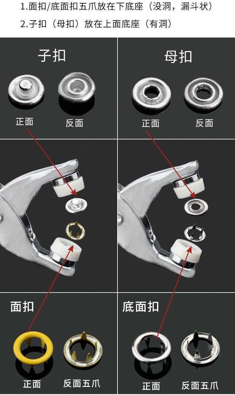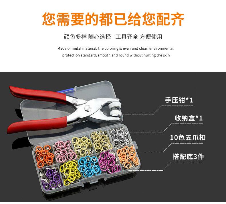 Herramienta de instalación de hebillas de cinco garras transfronterizas, hebillas de metal, broches para ropa, hebillas de hierro para pantalones escolares, hebillas femeninas