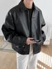 Chaqueta de cuero 2023, chaqueta casual para hombre, chaqueta de PU, chaqueta de béisbol con cuello alto, nueva chaqueta de cuero de moda para primavera y otoño para hombre 7701