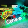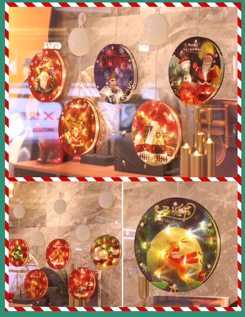 Lámpara de neón con adornos navideños, linterna, diseño de habitación, ventana, lámpara colgante con ventosa navideña, cadena de luces LED de colores