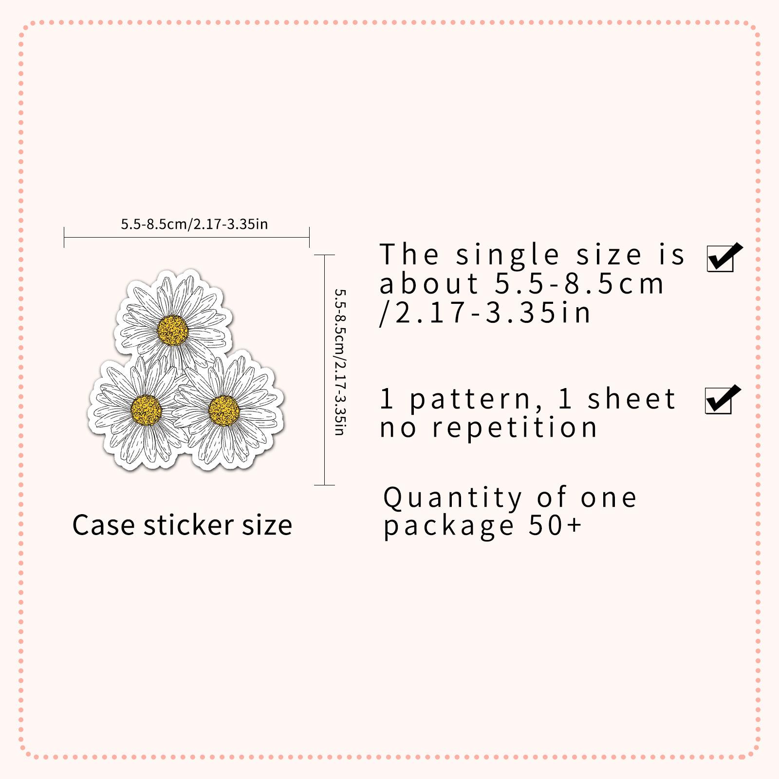 50 pequeñas pegatinas de margaritas con dibujos animados para equipaje, para manualidades, retro, impermeables, para ordenador y tableta.