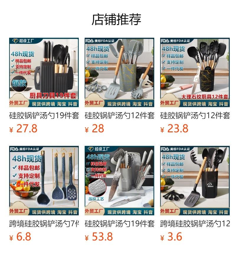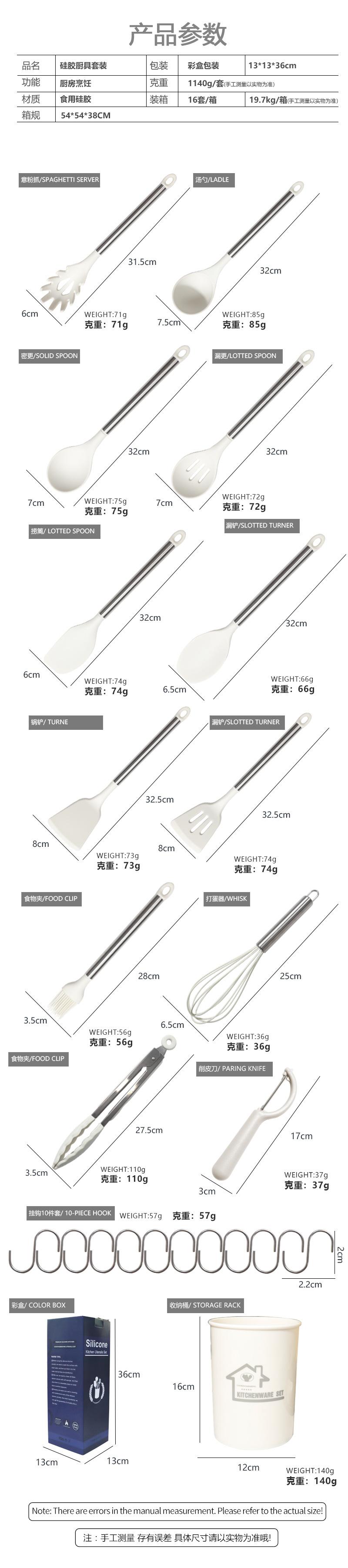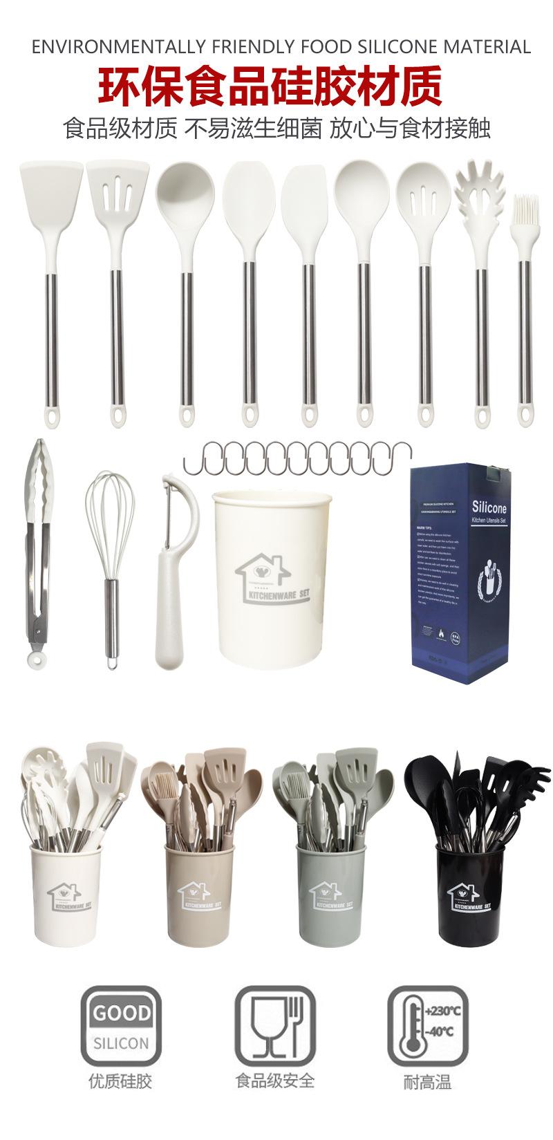 Espátula de silicona transfronteriza, cuchara sopera, 23 piezas, espátula de silicona antiadherente, espátula de acero inoxidable, utensilios de cocina de silicona, venta al por mayor