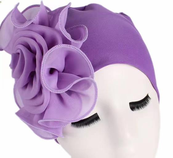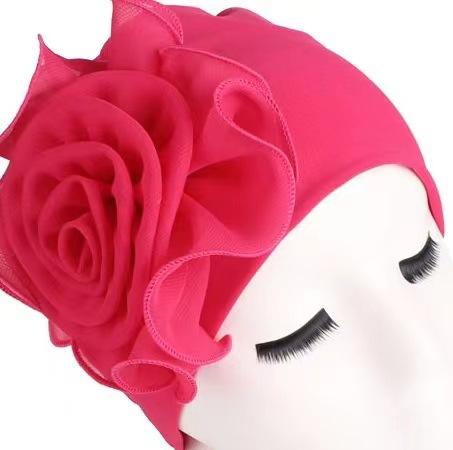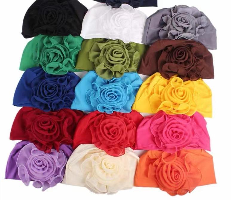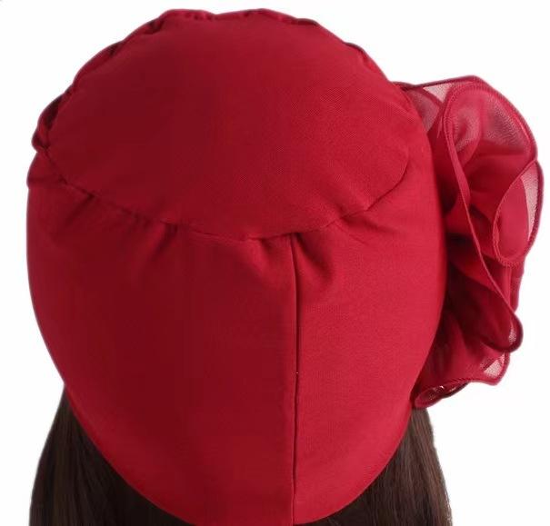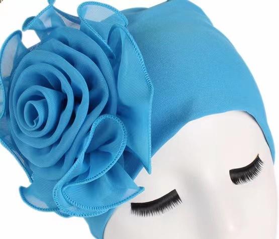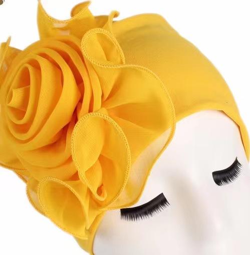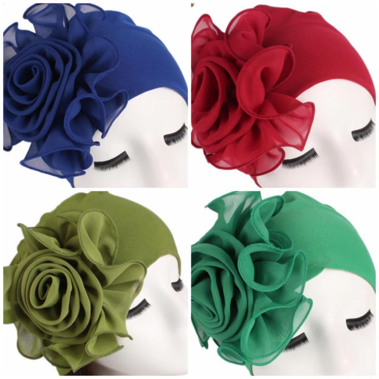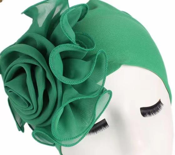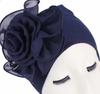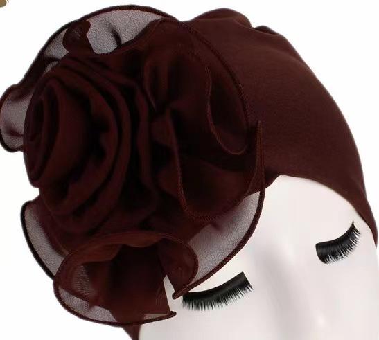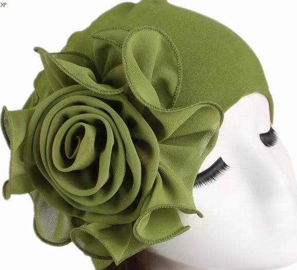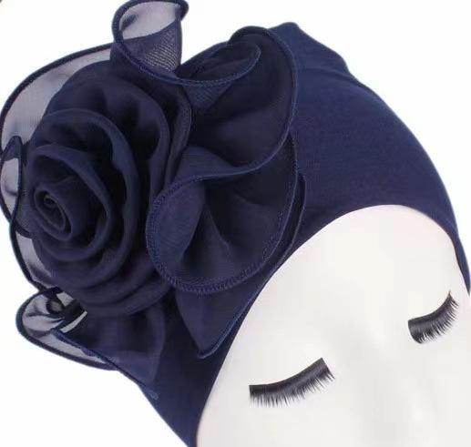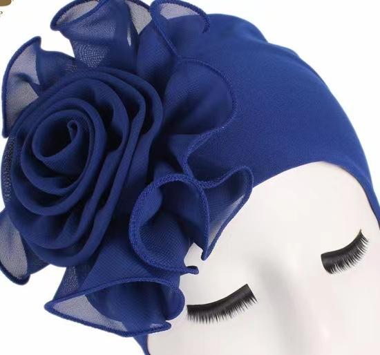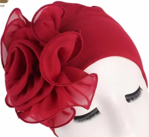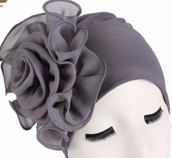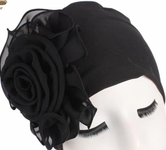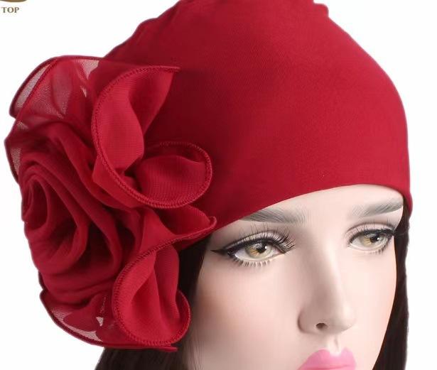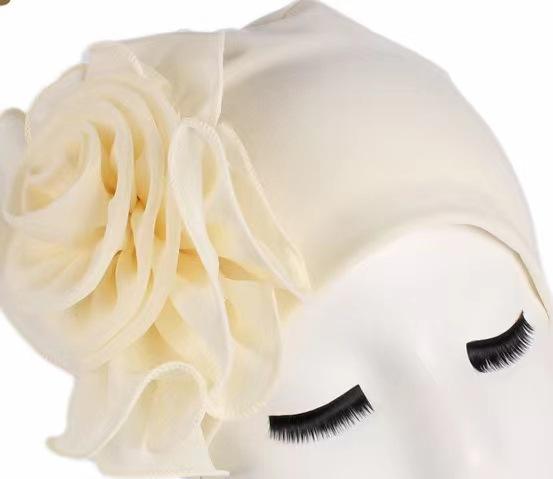 Gorro de tela elástica con flor grande lateral de estilo nuevo, sombrero de flor de gasa de moda para mujer