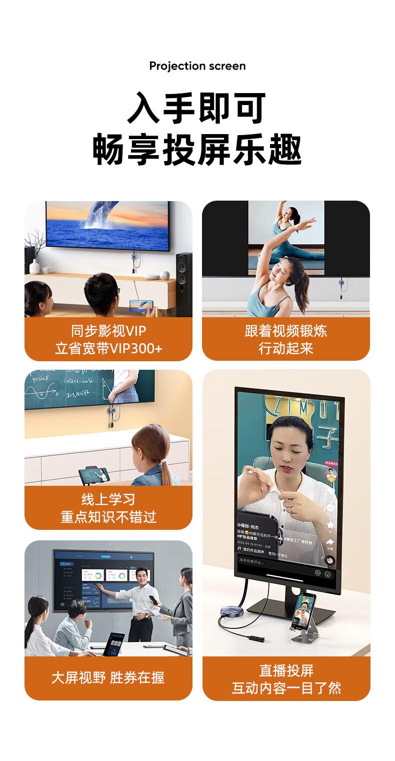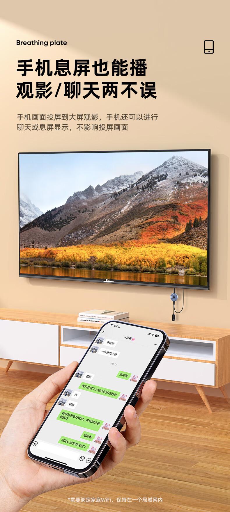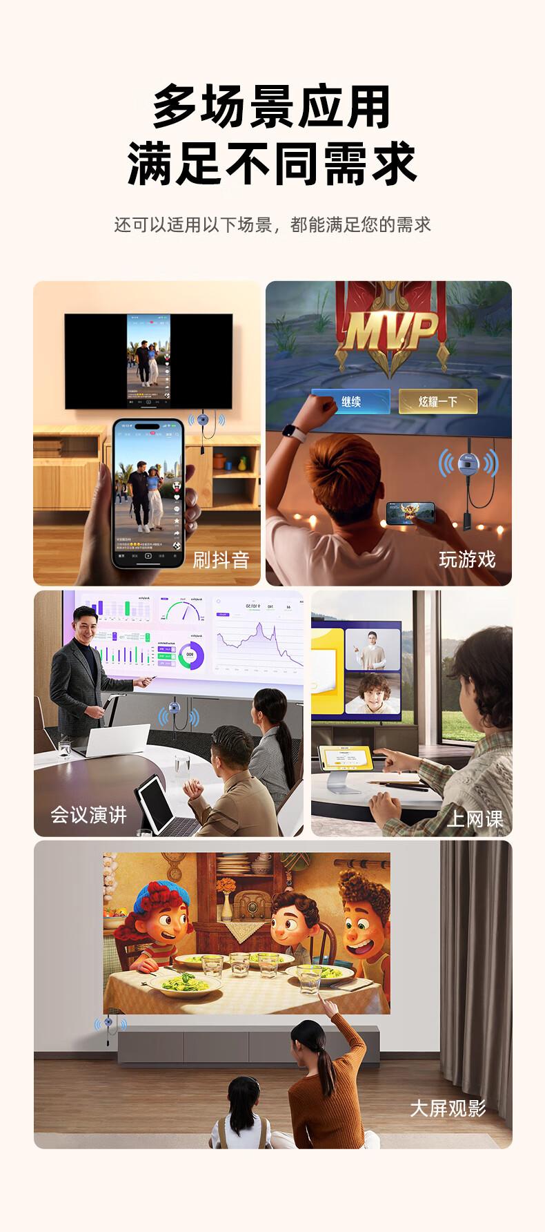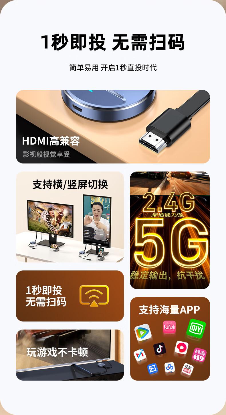 Proyector de pantalla inalámbrico Biaz 5G +2.4 Transmisión de audio y video de doble frecuencia en la misma pantalla del teléfono móvil y la computadora conectada al monitor de TV