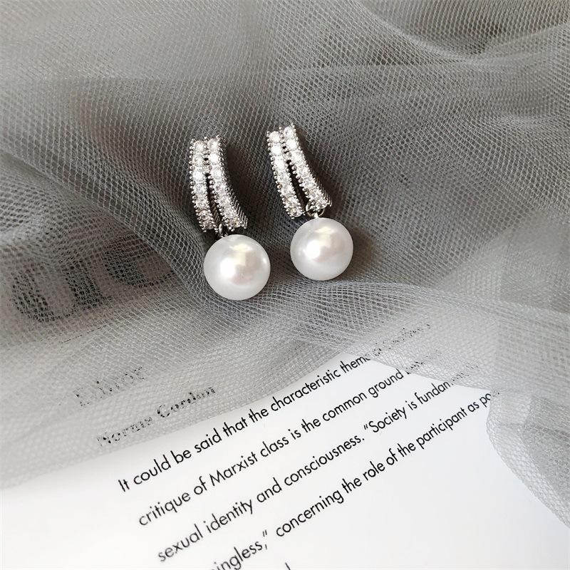 Compra Corea del Sur Pendientes Geométricos Elegantes de Perlas para Mujer Pendientes Exquisitos Elegantes Simples para Combinar con Todo con Incrustaciones de Diamantes de Alta Gama al por mayor en Joom.pro