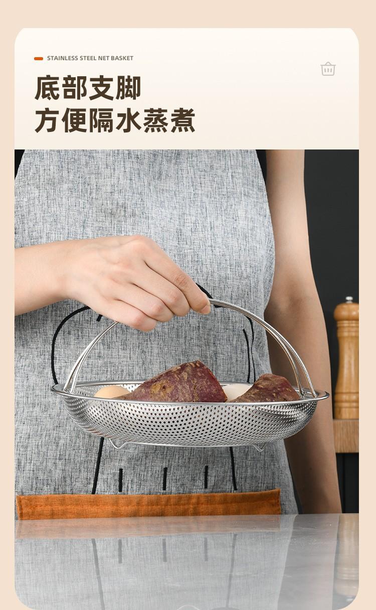 Vaporera de acero inoxidable vaporera vaporera pequeña vaporera doméstica vaporera cesta de drenaje colador para lavar frutas con vaporera portátil