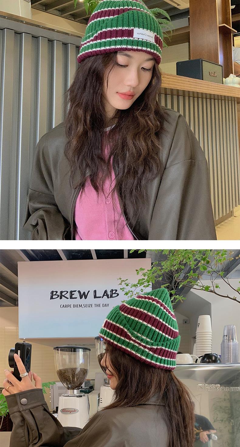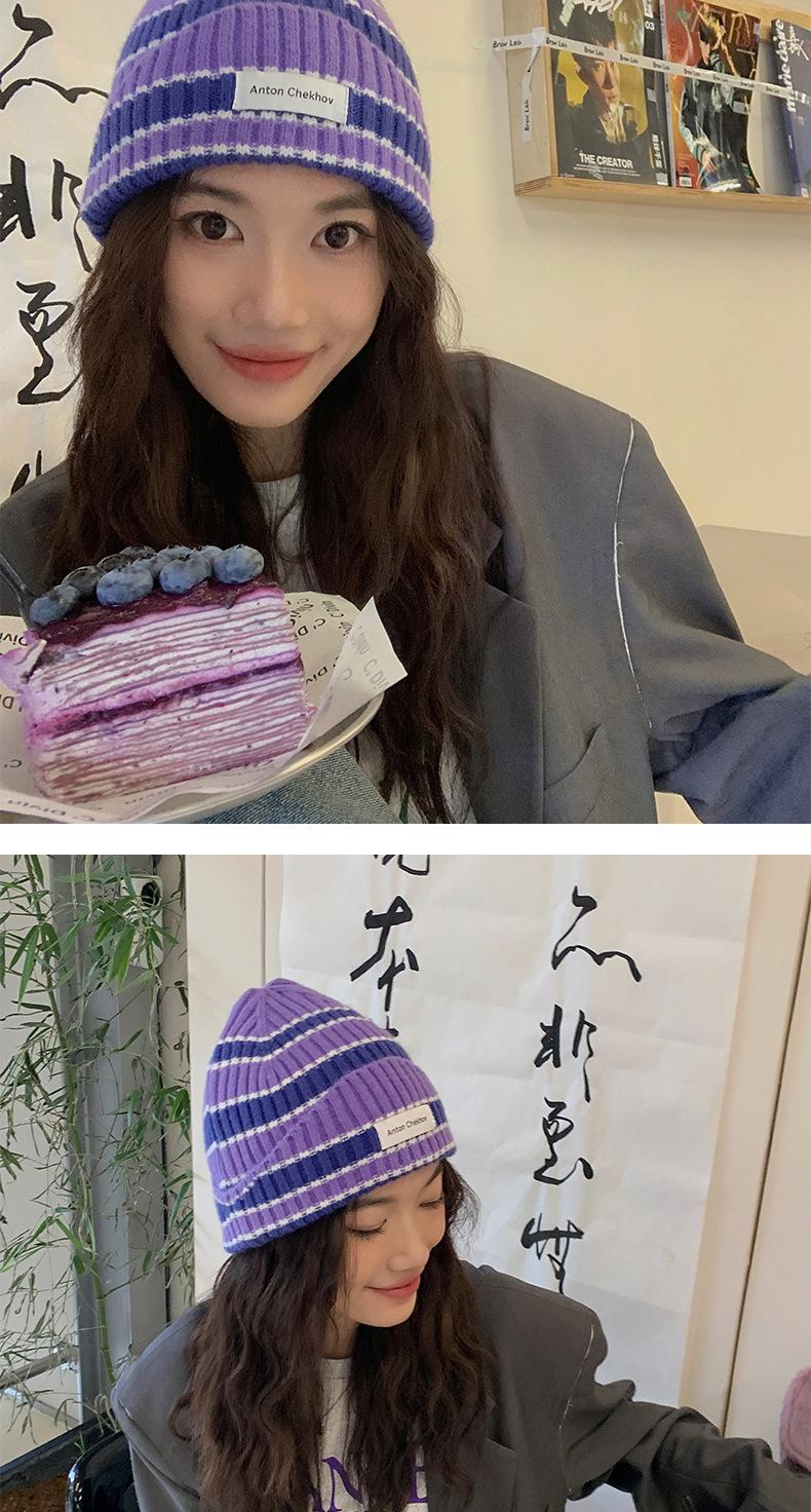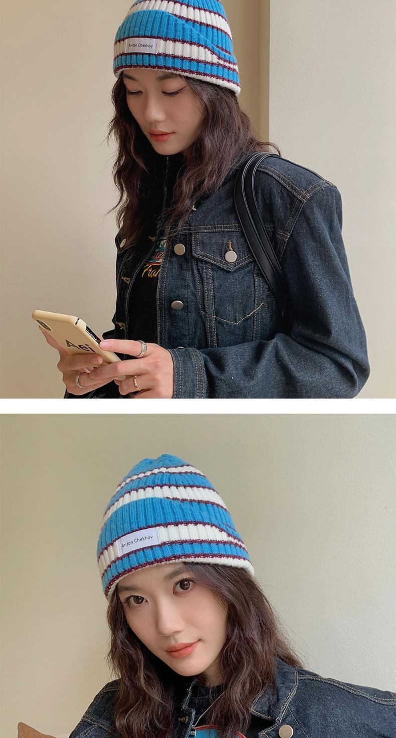 Gorro de lana de invierno moderno y moderno, estilo coreano, con orejeras y reborde, tejido para la cabeza, versátil, colorido, cálido y frío.