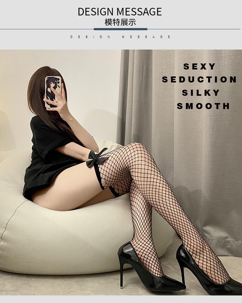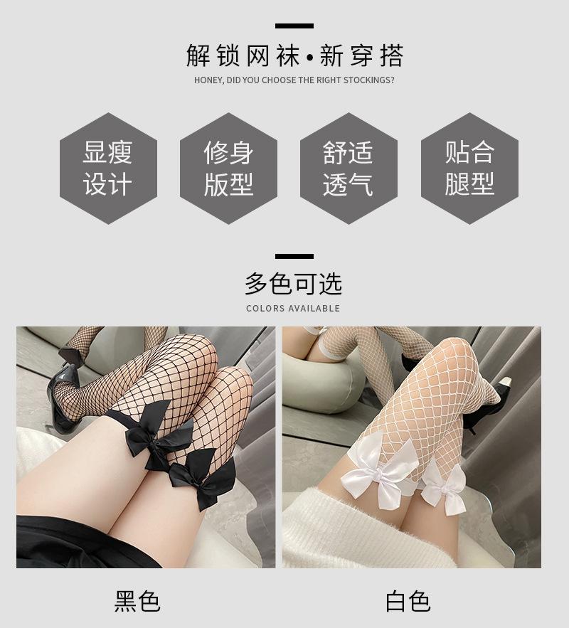 Medias de red con lazo sexy para chica Fan Lei, divertidas y grandes medias de red de pesca para mujer, medias para el cabello 022