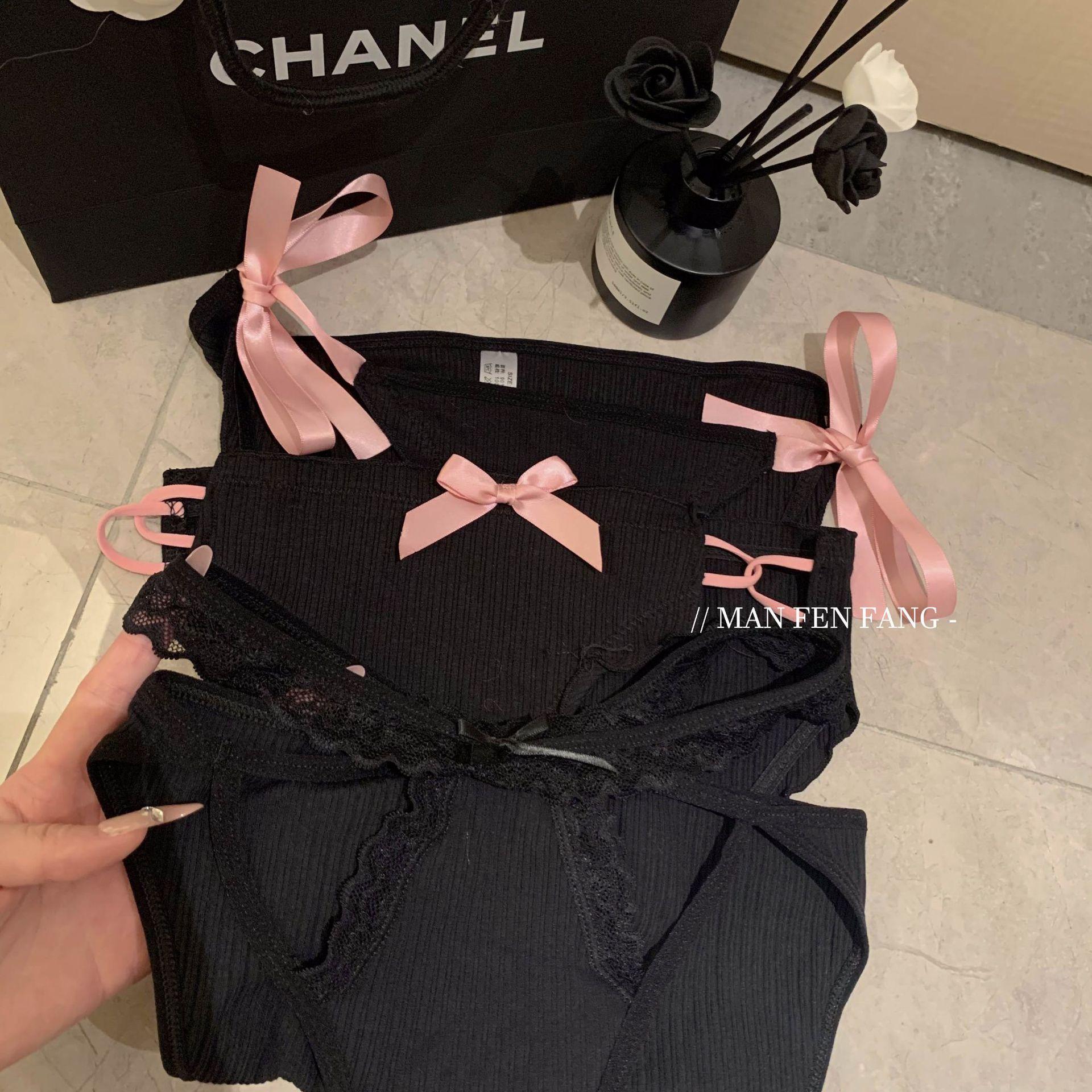 Ropa interior negra estética * sexy de puro deseo con huecos cruzados para mujer, bragas de algodón con cintura baja y cordones para chica