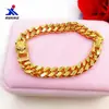 Pulsera de latón al por mayor de fábrica chapada en oro, joyería de boda de oro de imitación electrochapada, pulsera de joyería para hombre con cabeza de leopardo dominante