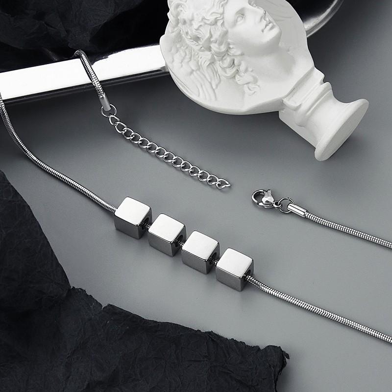 Polished titanium steel square necklace-40cm + 5cm, Polished titanium steel square necklace-45cm + 5cm, Polish...