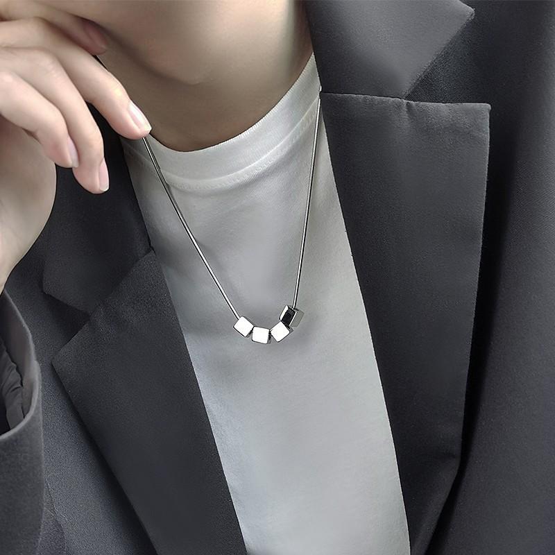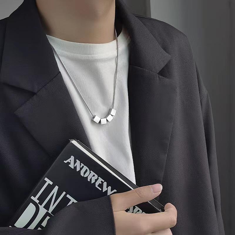 Collar cuadrado pequeño de acero de titanio para mujer, estilo frío, moda de nicho, colgante de alta calidad, cadena de suéter, collar de pareja, cadena de hueso de serpiente