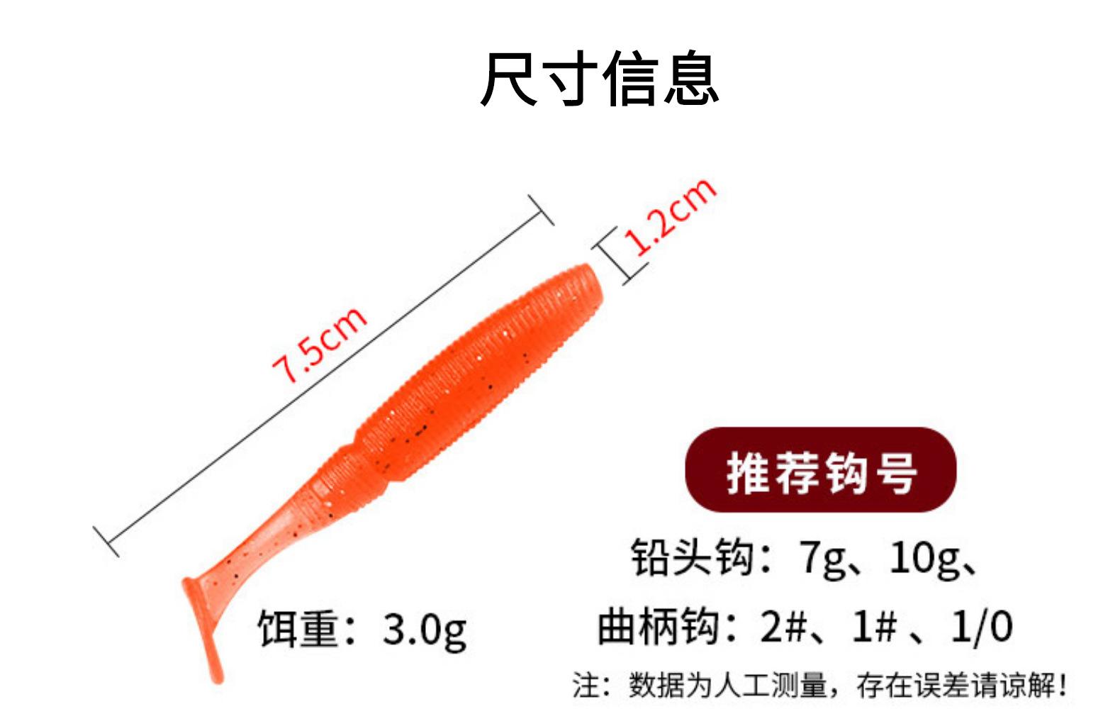 Tornillo ranurado directo de fábrica cola T cola T extraña pez cebo Luya Cebo Suave pez suave cebo falso 7.5cm3g