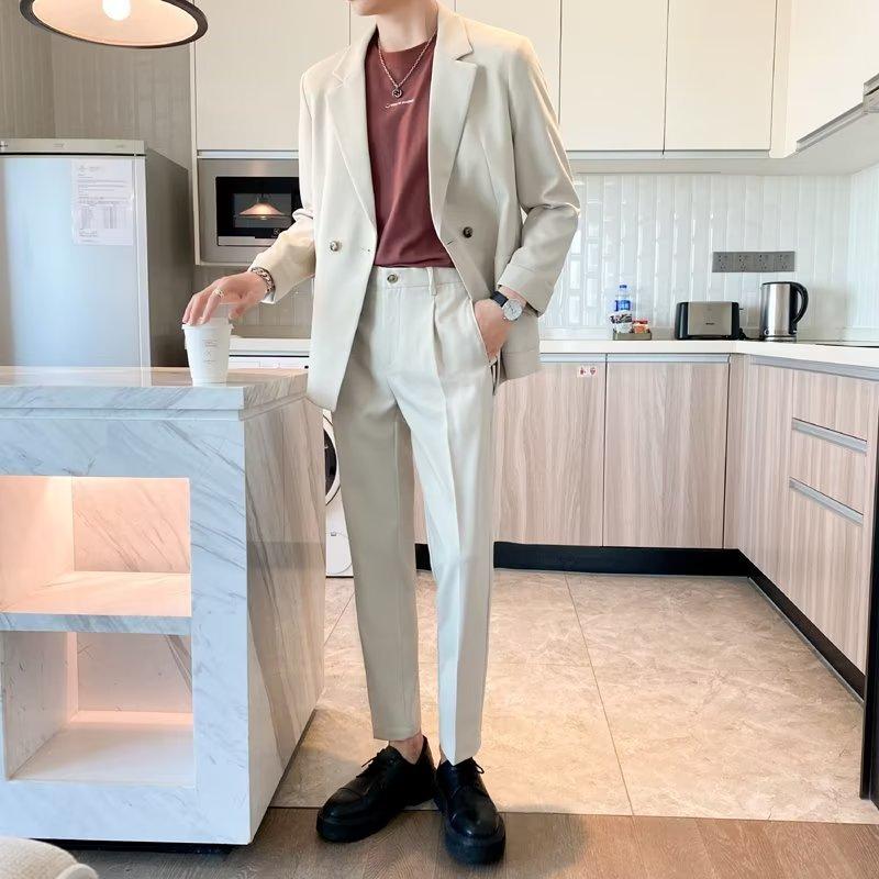 Traje casual de alta gama de primavera y otoño, estilo coreano, holgado, combina con todo, chaqueta de traje ligera y madura para hombre guapo Ruan
