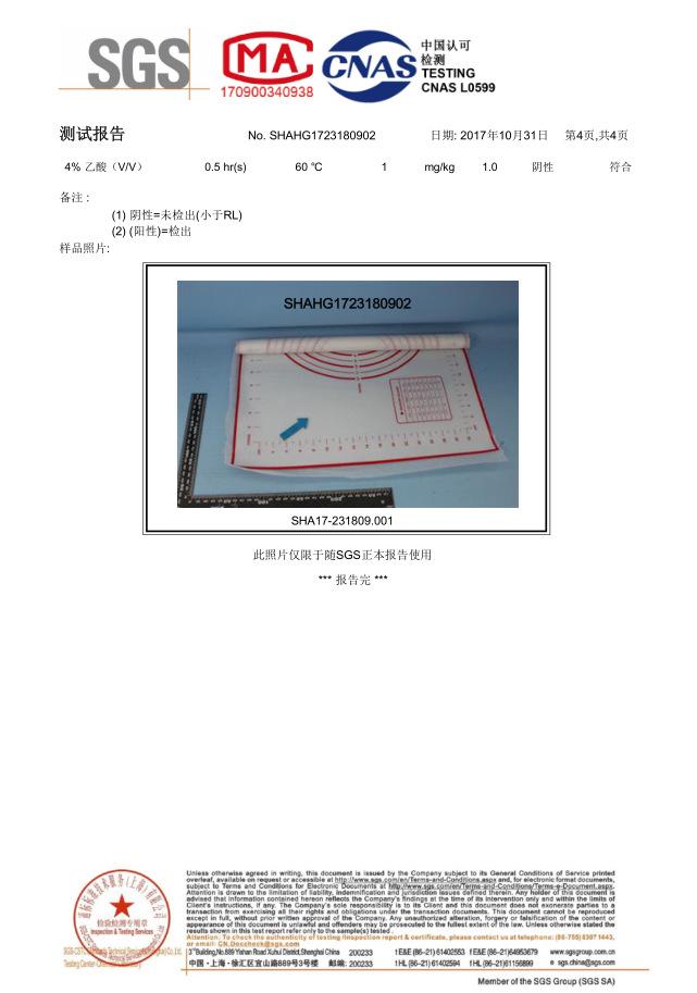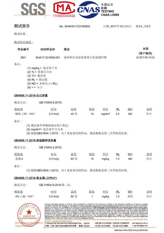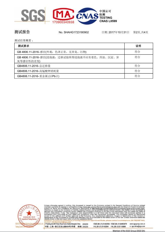El informe de certificación de grado alimenticio se publica de la siguiente manera: