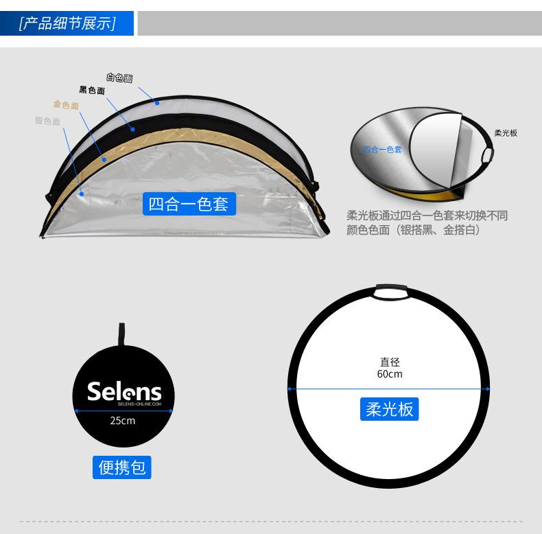Compra Mini tablero de luz suave plateado redondo de 30 cm, reflector portátil de 60 cm, tablero de luz de parche para fotografía de 80 cm al por mayor en Joom.pro