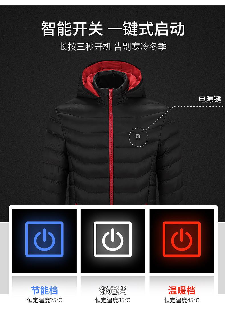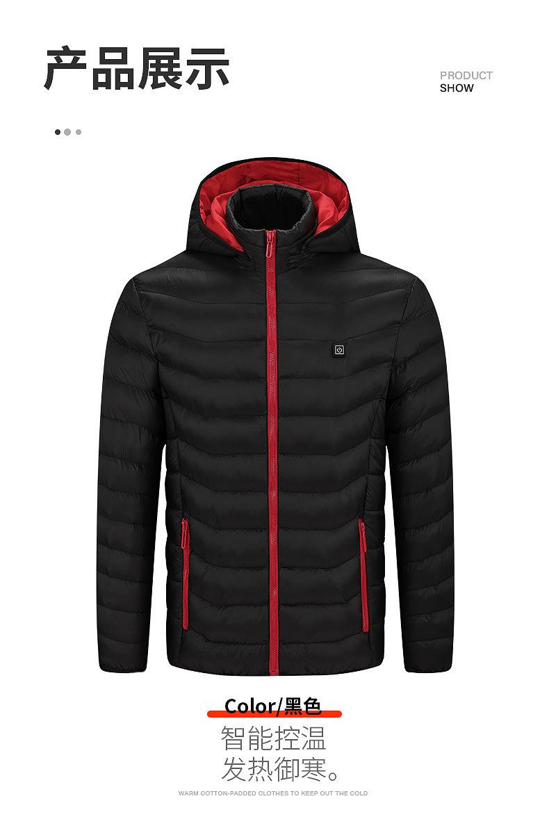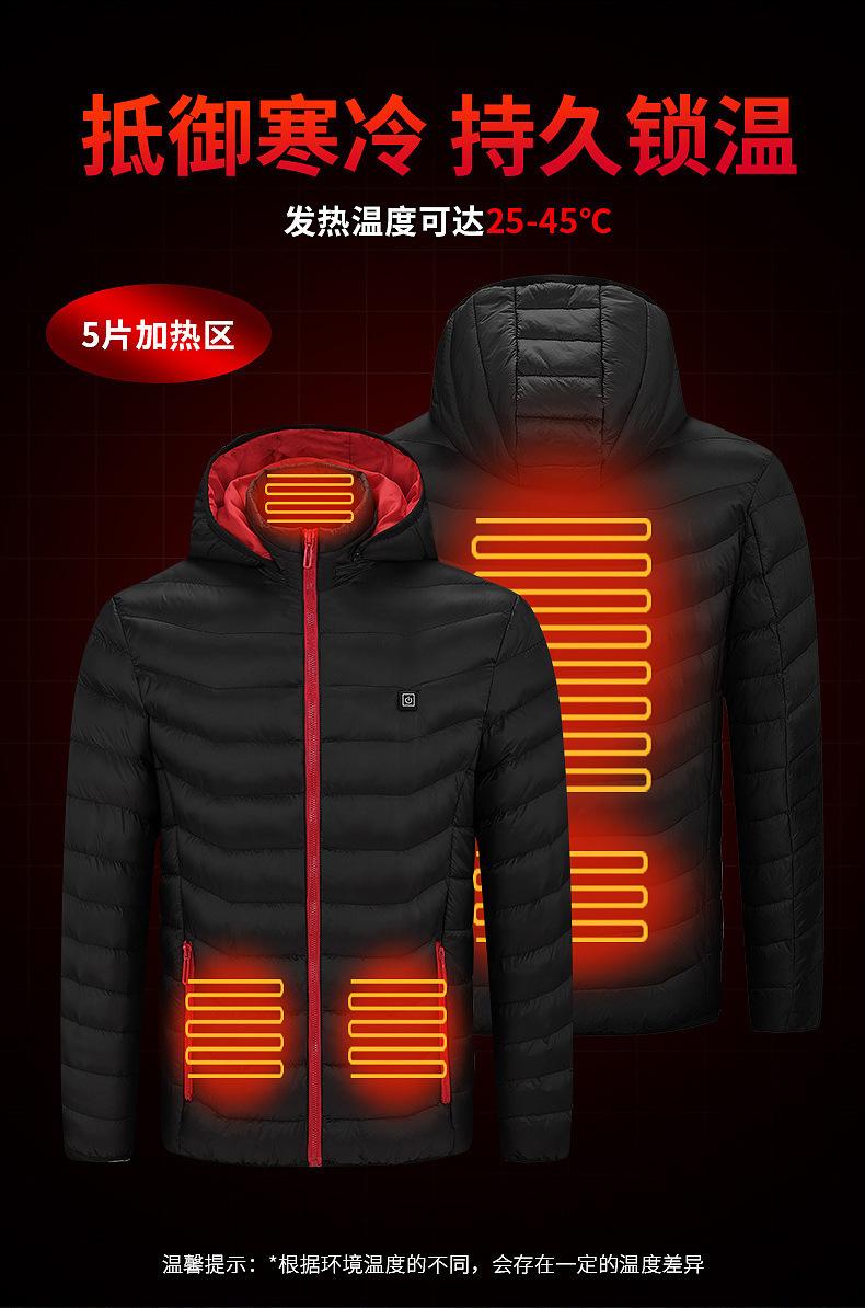 Chaqueta de Algodón Acolchada con Calefacción USB de Amazon con Capucha Desmontable, Abrigo de Algodón con Calefacción de Cinco Zonas para Hombre, Producto Transfronterizo de Alta Venta