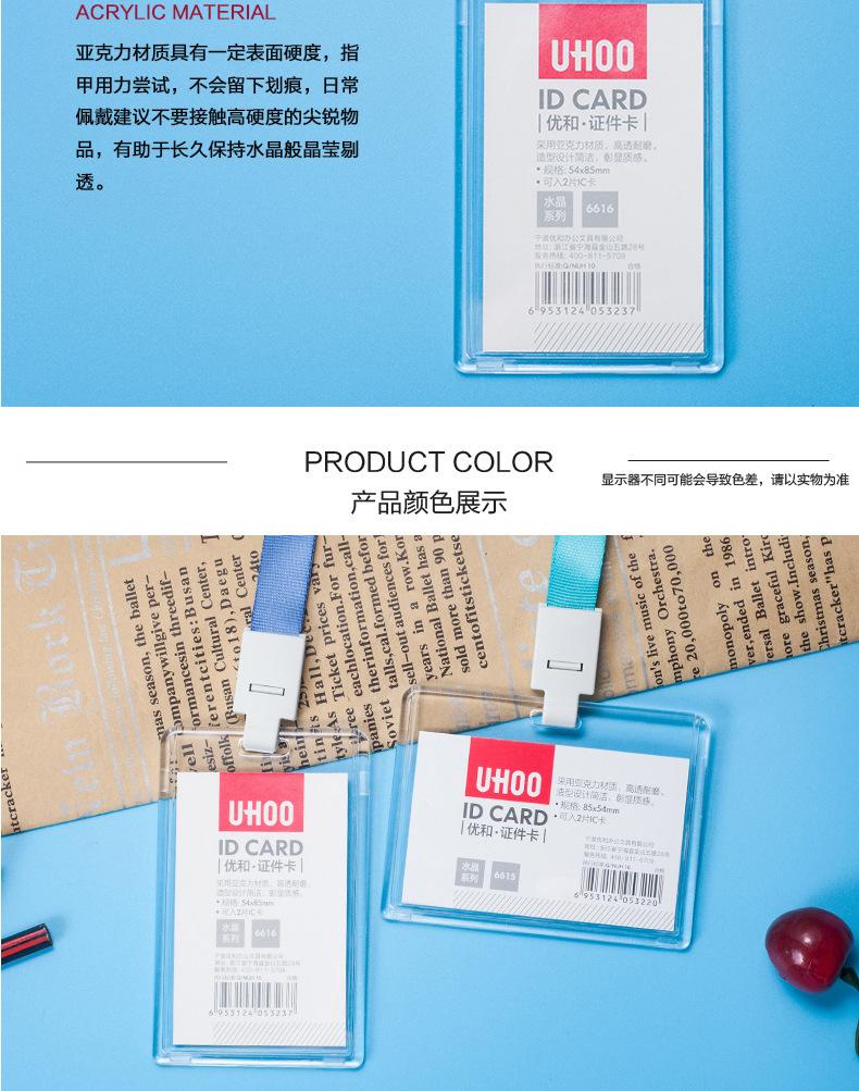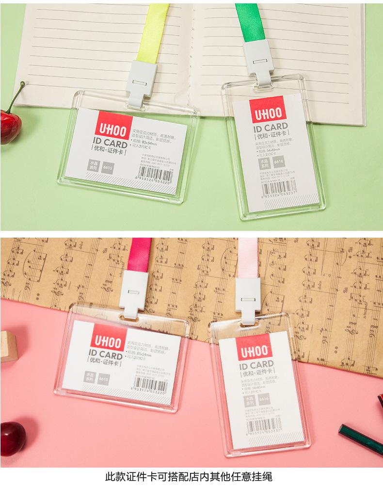 Portatarjetas Youhe de acrílico transparente de doble cara con cordón para identificación y número de trabajo