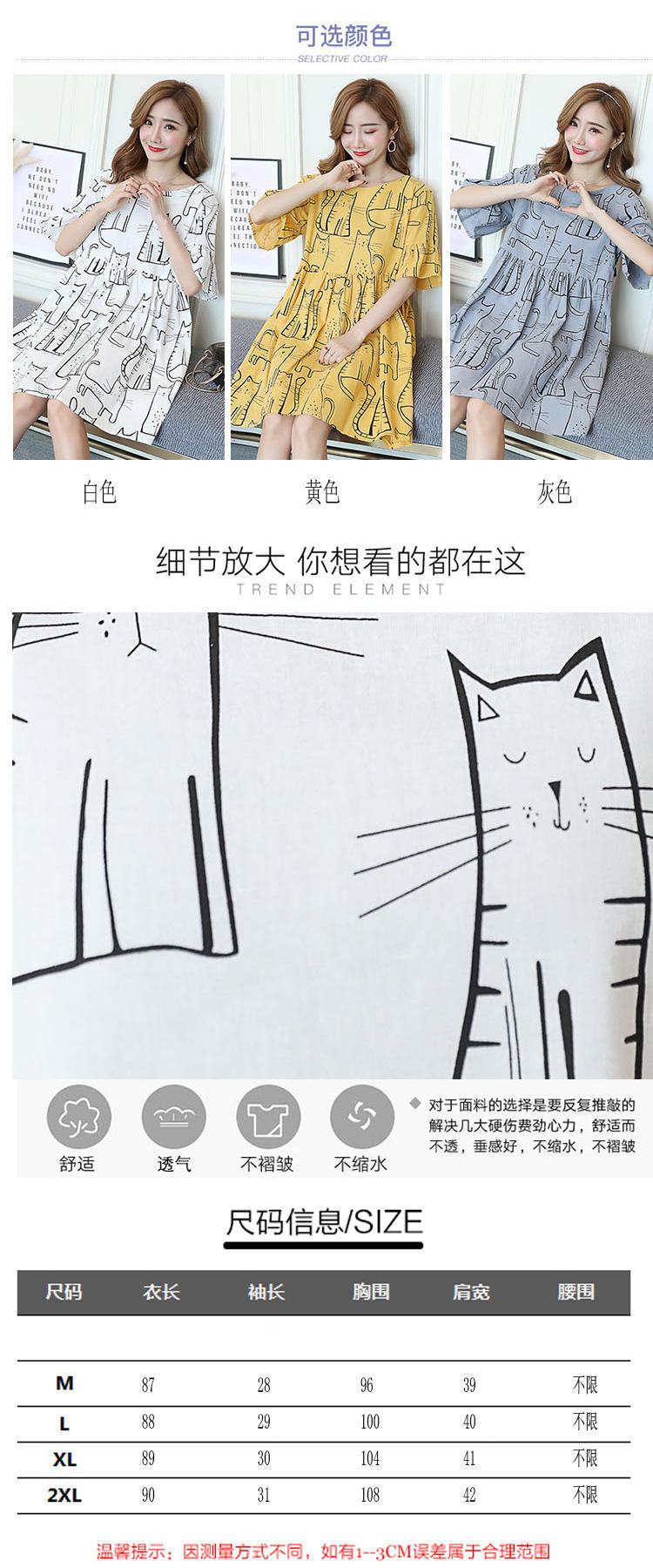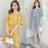 Vestido de Maternidad Vestido Estilo Francés Vestido Largo Dulce para la Hora del Té Manga Corta Mujeres Embarazadas Casual Vestido de Dibujos Animados Vestido Delgado de Verano para Mujer