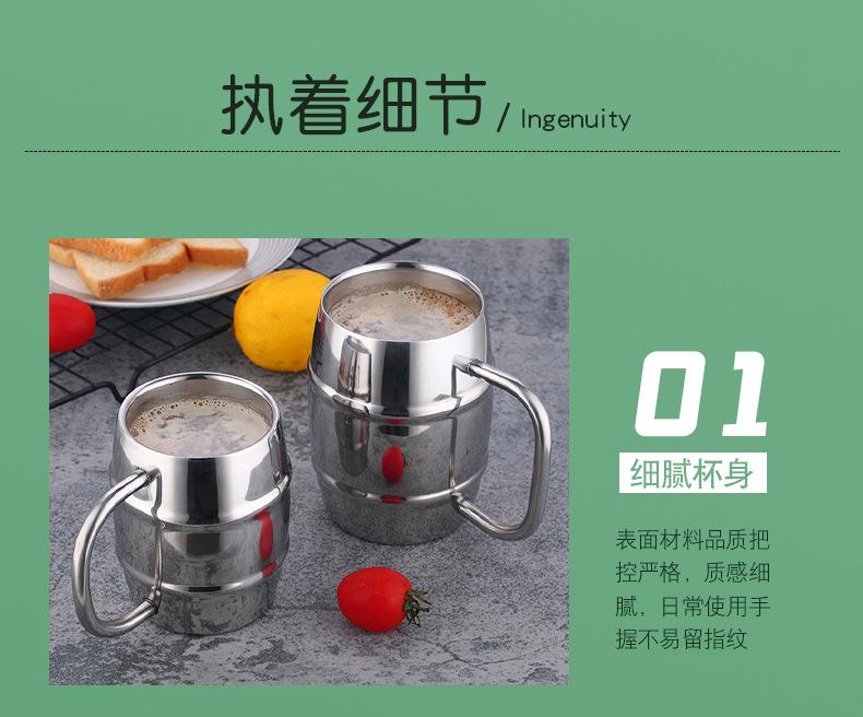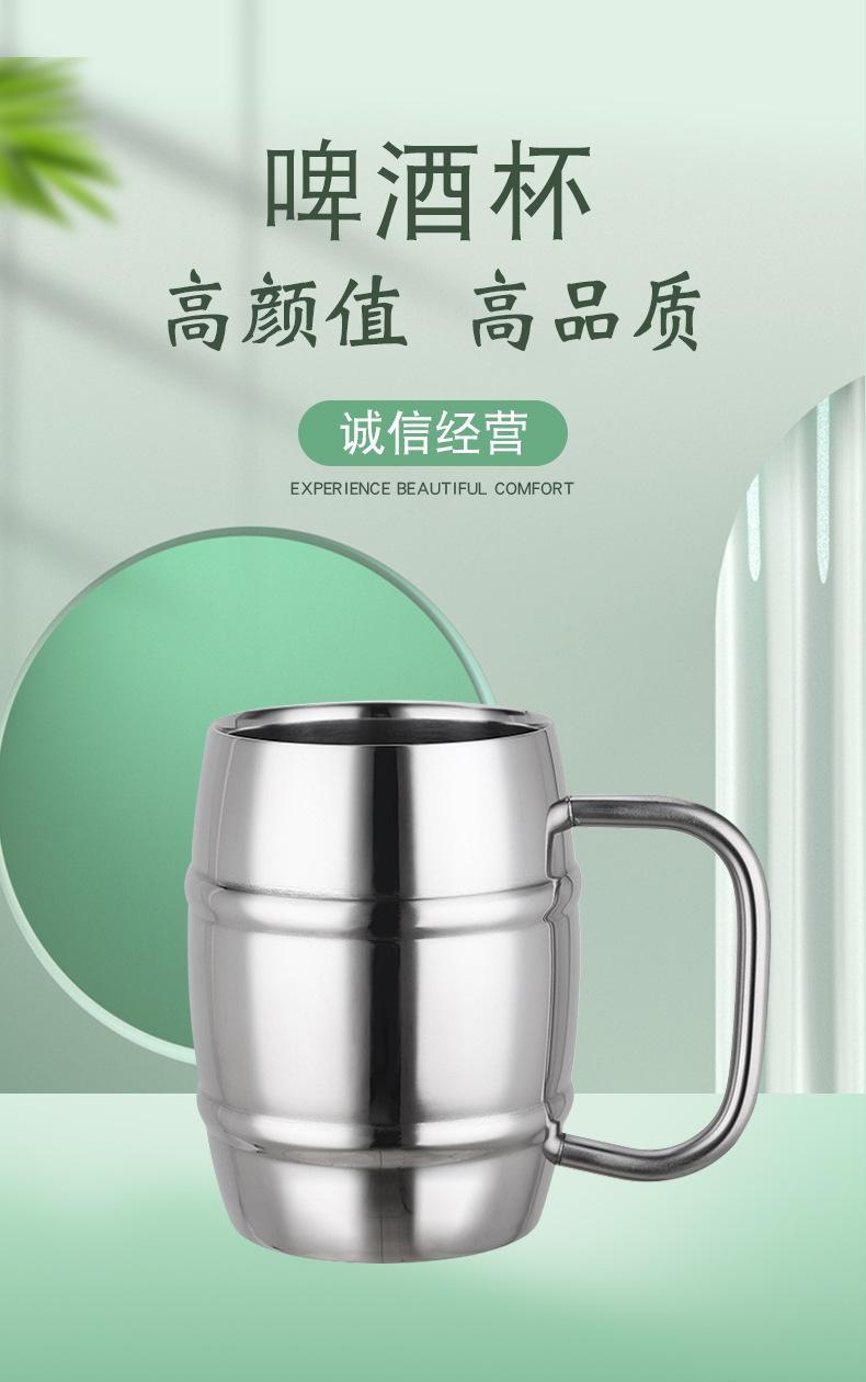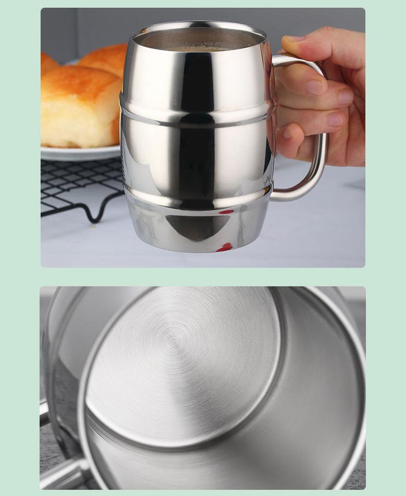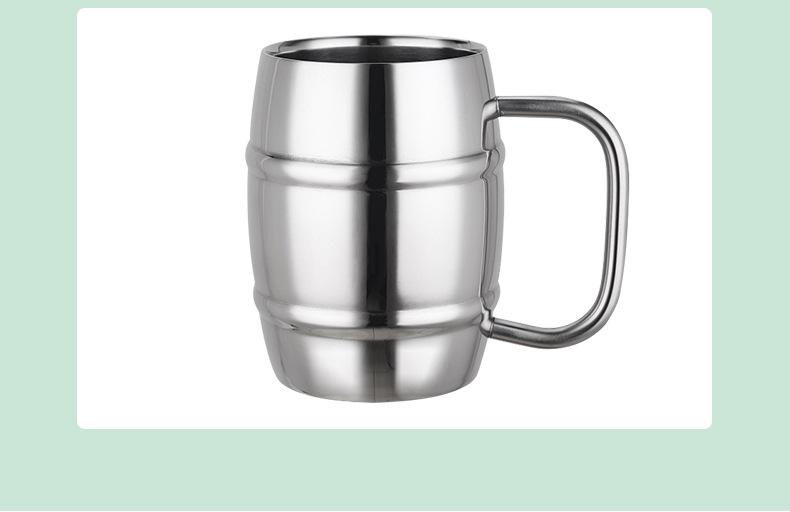 Taza de Cerveza de Acero de Doble Capa Creativa de Acero Inoxidable 304 Taza para Cerveza de Barril Leche Café Té con Leche Taza para Beber para Niños con Asa