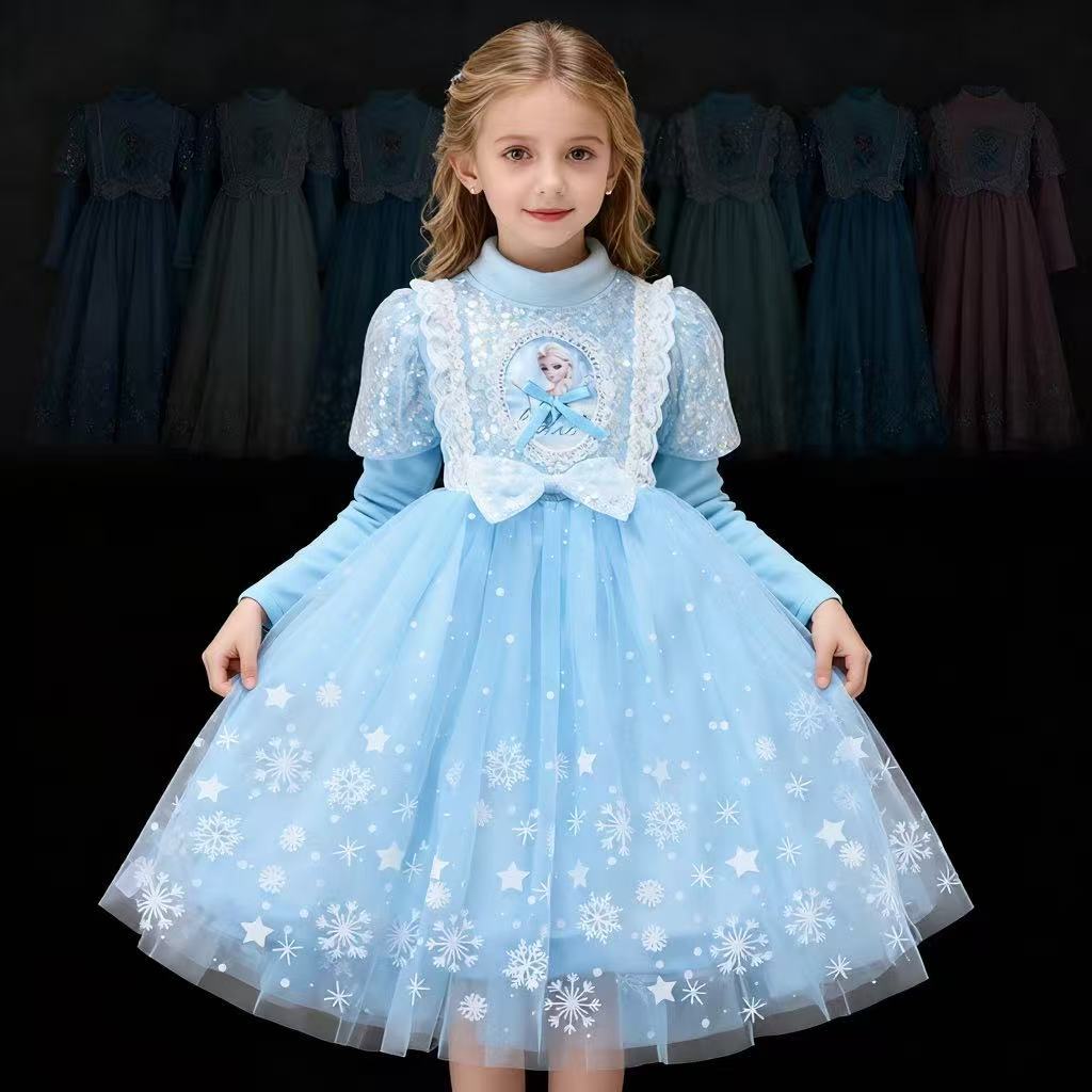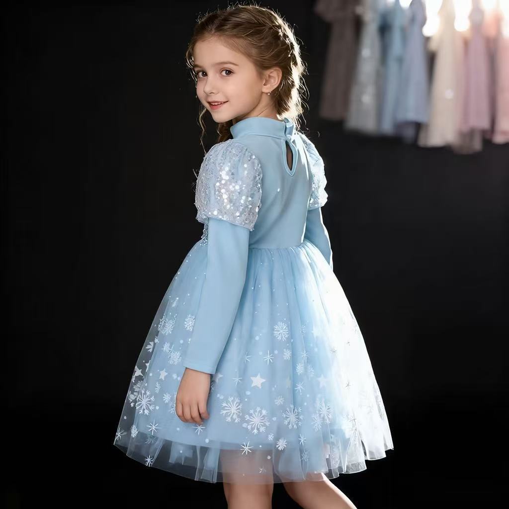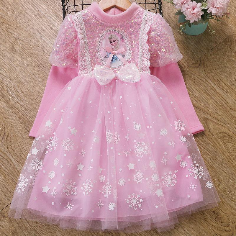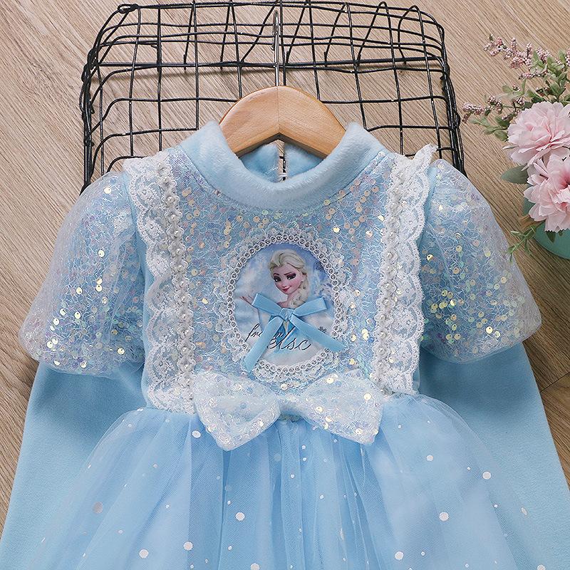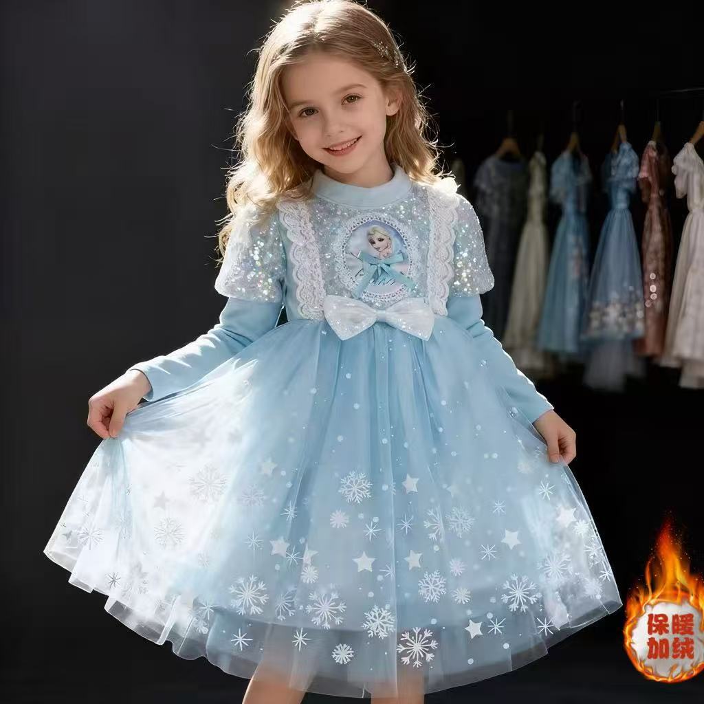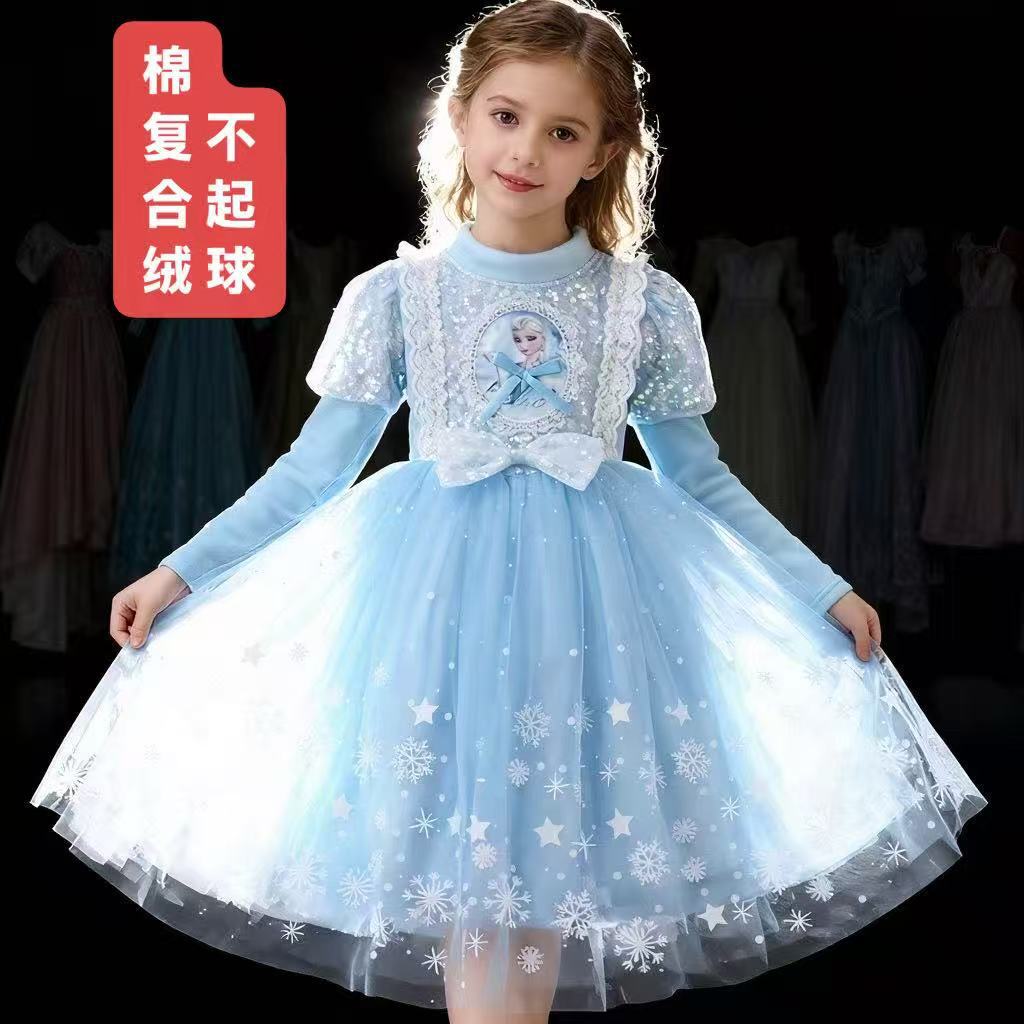 Vestido de Princesa Elsa de Terciopelo de Otoño e Invierno Vestido de Elsa para Niñas Halloween Navidad Infantil