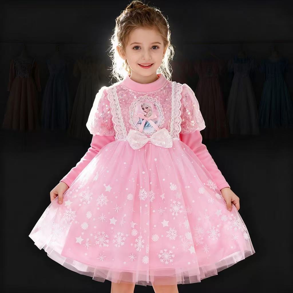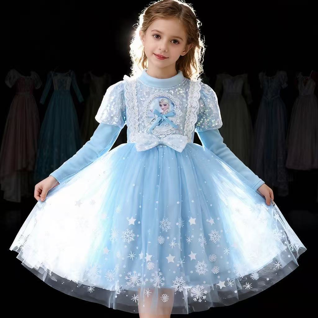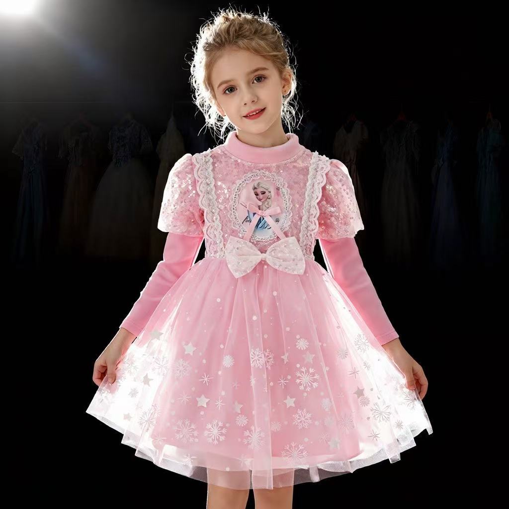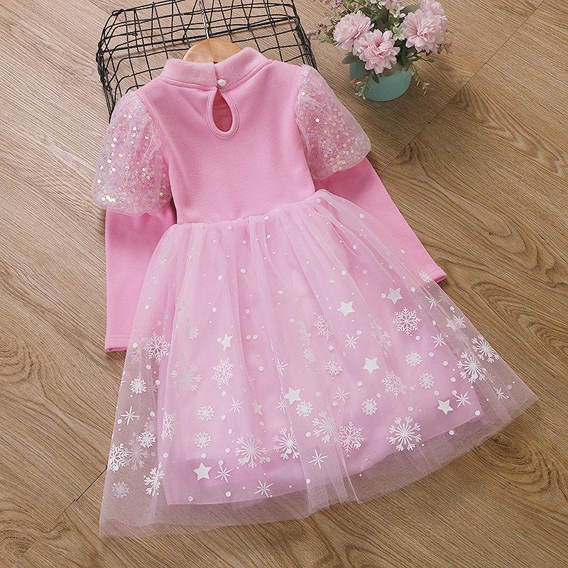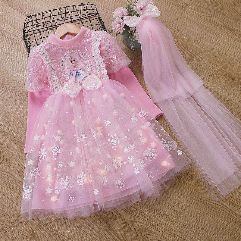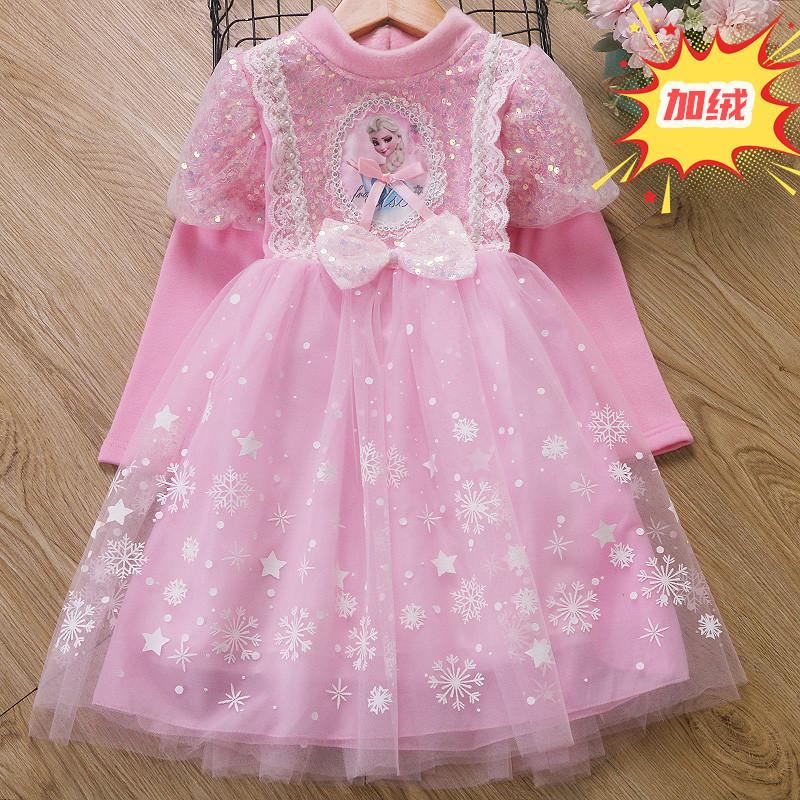 Vestido de Princesa Elsa de Terciopelo de Otoño e Invierno Vestido de Elsa para Niñas Halloween Navidad Infantil