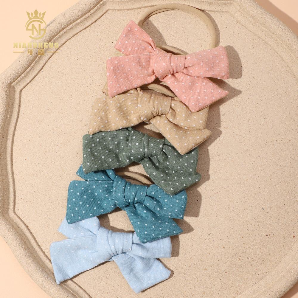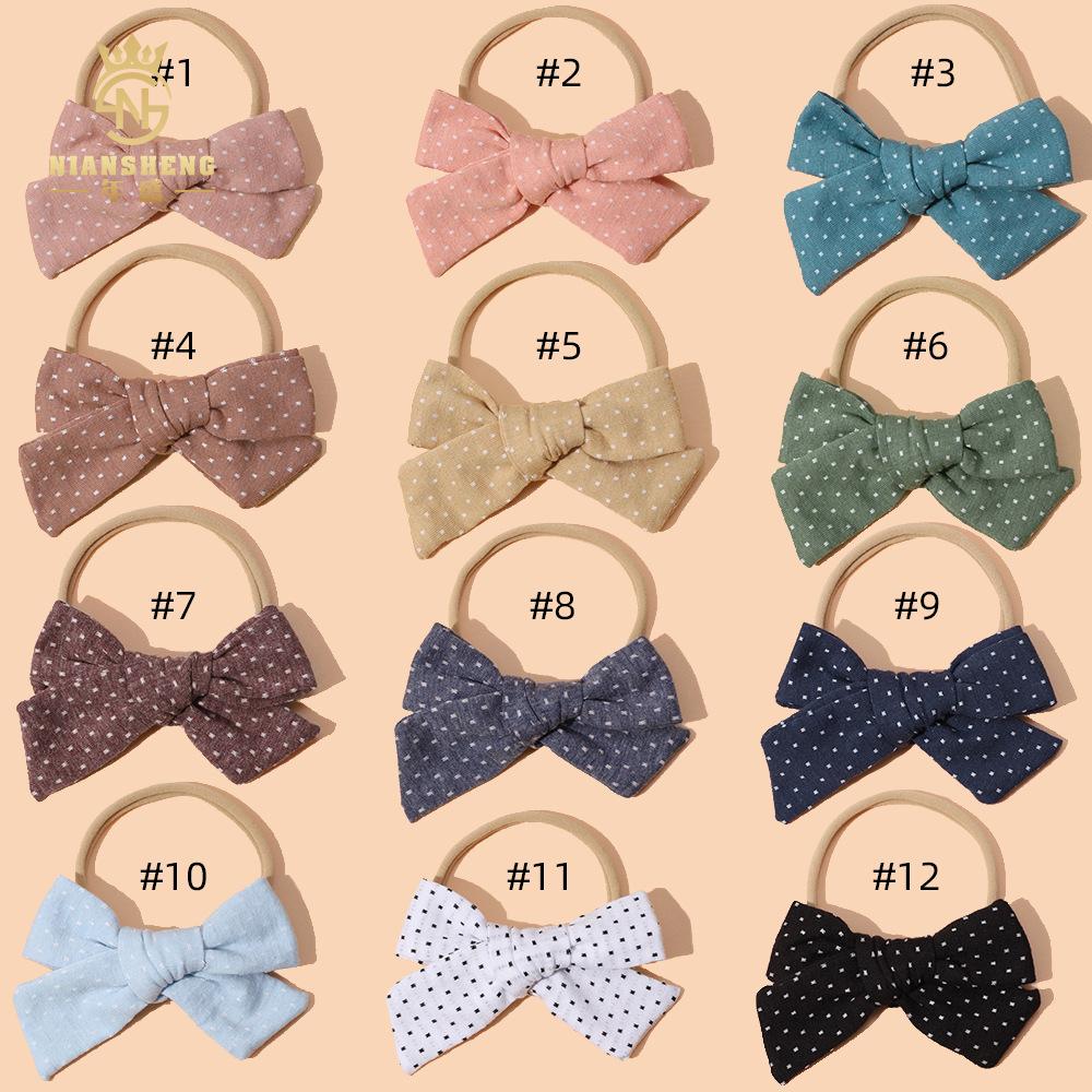 Nuevo en stock europeo y americano, lazo de tela hecho a mano, bonito lazo de nailon fino para bebé, accesorios para el cabello de bebé, tocados para bebé