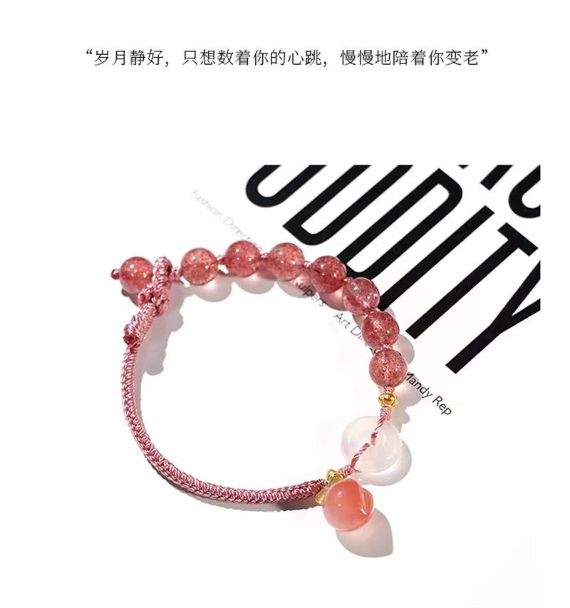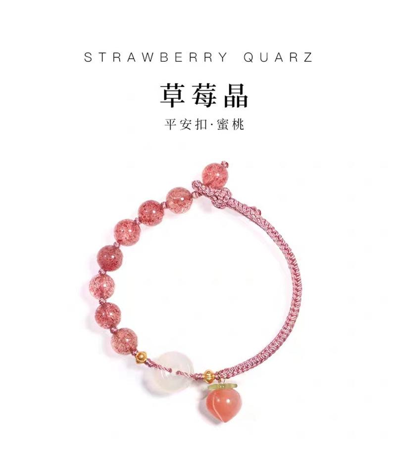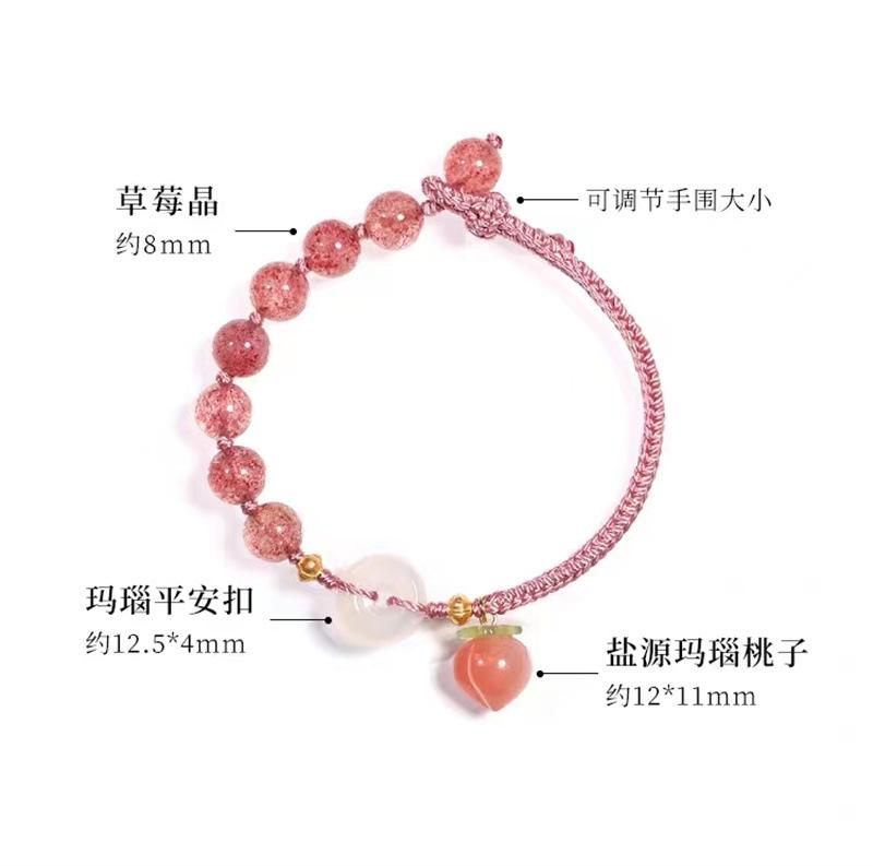 Strawberry Crystal hand rope, Snake knot agate safety buckle (left), Snake knot Dongling Jade peace Buckle (right)