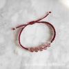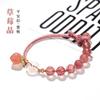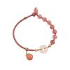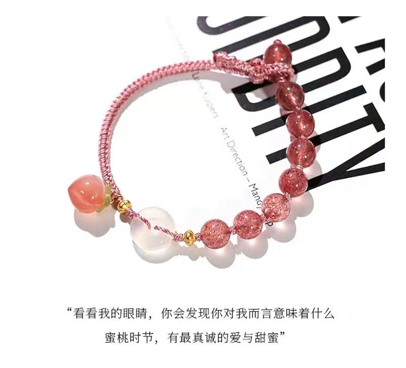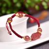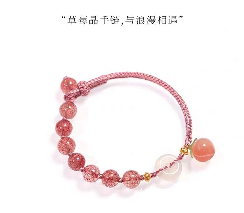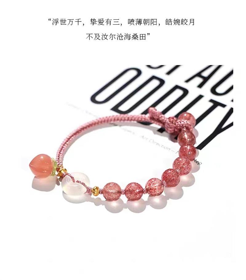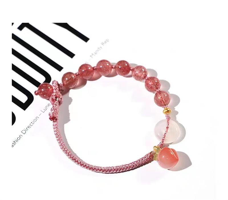 Pulsera de Cristal de Fresa Natural Rosa Melocotón Tejida a Mano Cuerda de Mano con Hebilla de la Paz para Novia Pulsera de Cuerda Roja Regalo