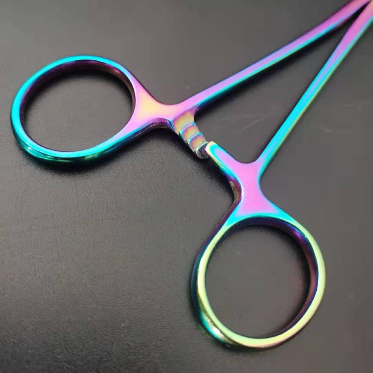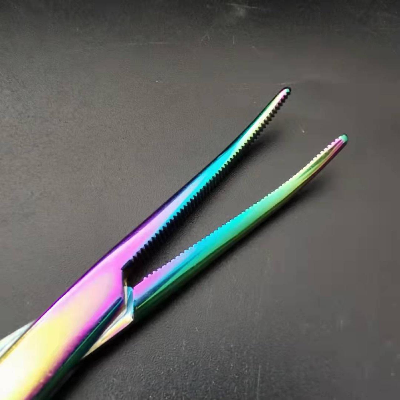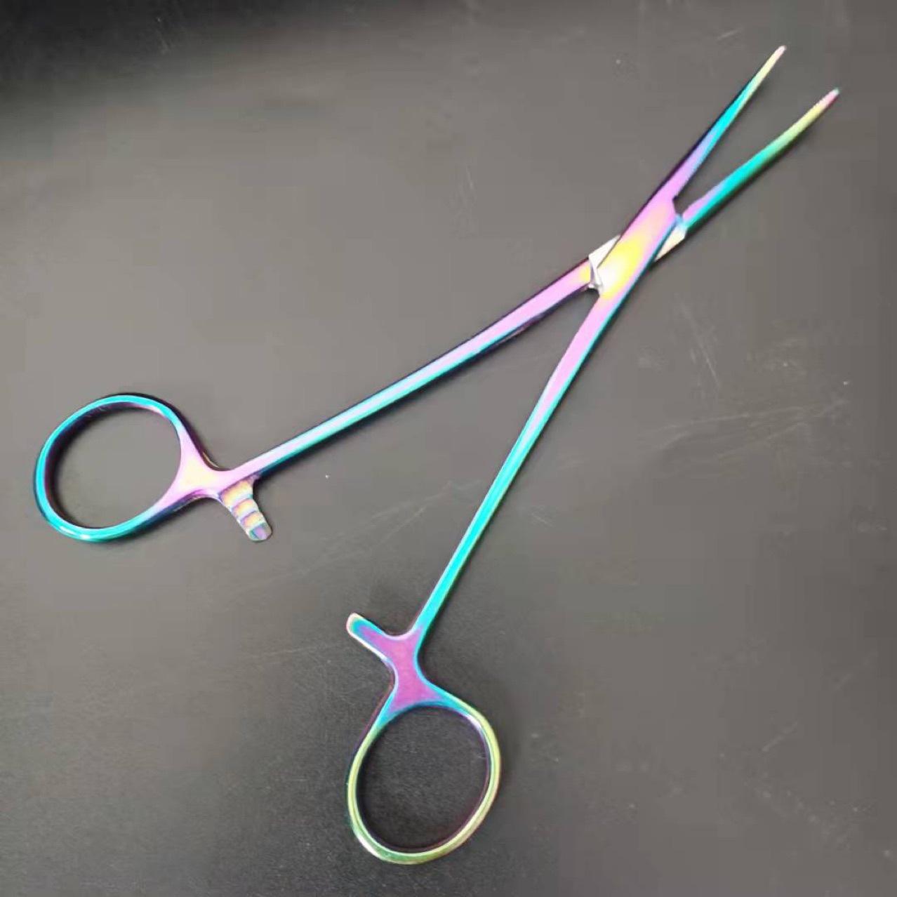 Pinzas hemostáticas de colores, pinzas hemostáticas de pesca, alicates de gancho de 14, 16 y 18 cm, pinzas hemostáticas de cabeza recta con codo, venta al por mayor