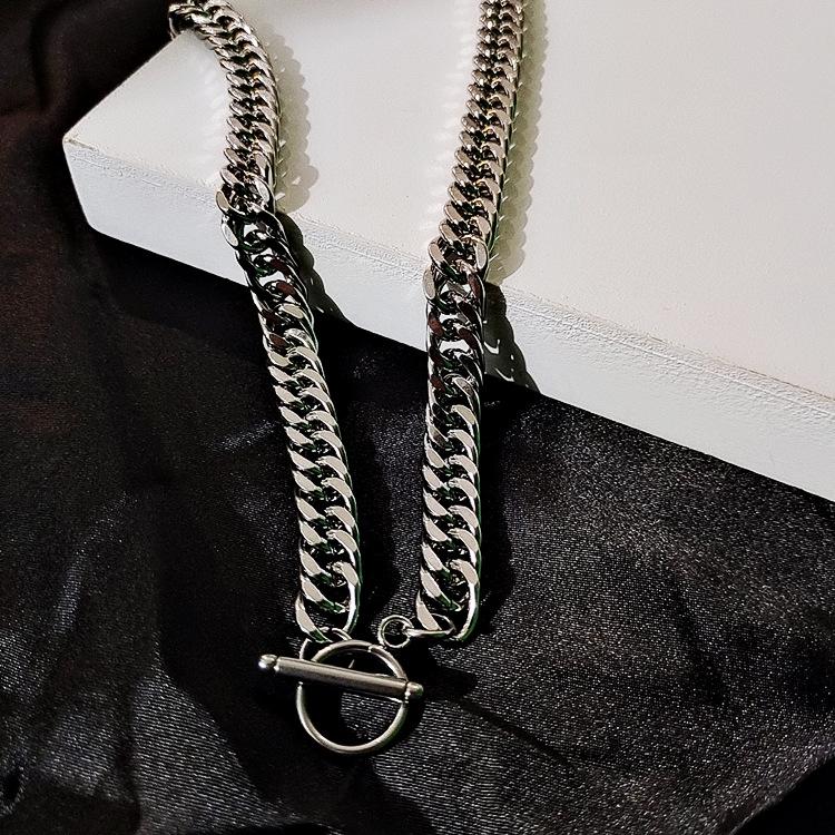 Collar ancho de acero de titanio europeo y americano para hombres y mujeres, personalidad ins moderna, hip-hop, cadena gruesa simple