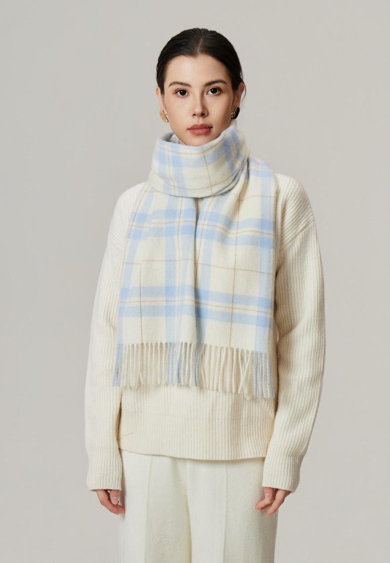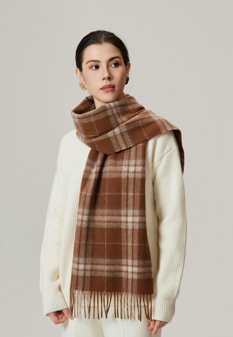 Bufanda de Lana 100% Estilo Coreano para Mujer, Otoño e Invierno, Bufanda de Cuadros Simple y Versátil para Mujer, Bufanda con Flecos para Hombre, Venta al por Mayor