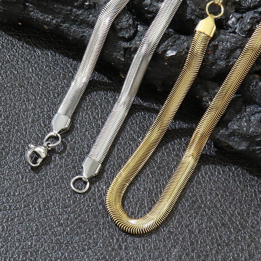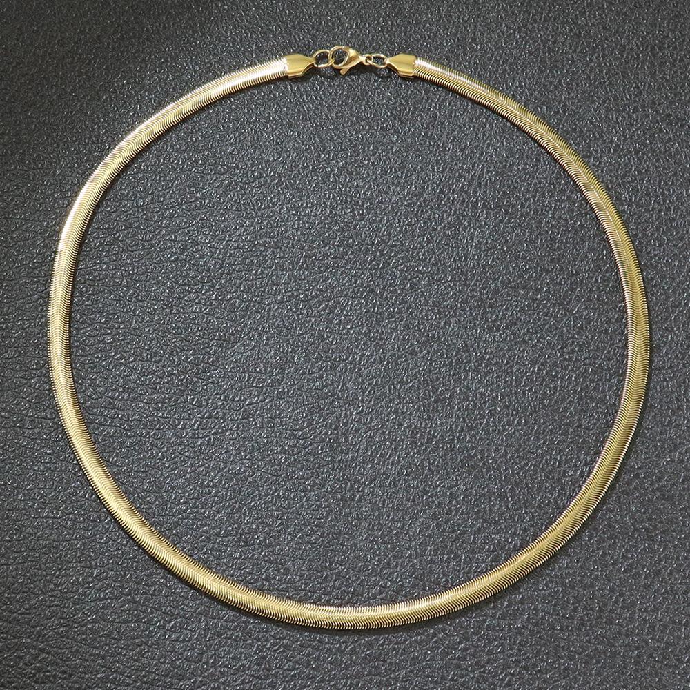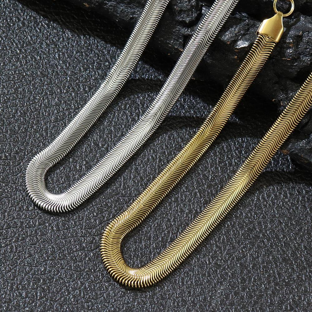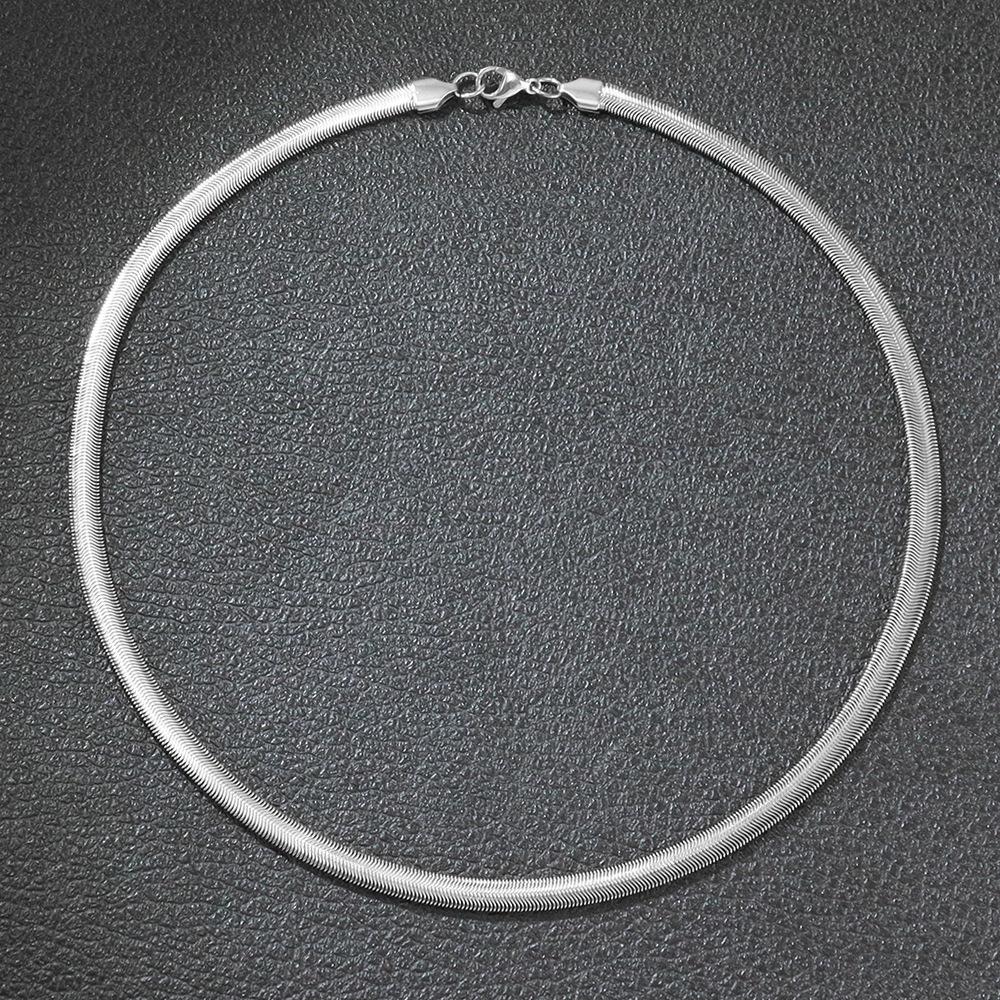 Cadena Plana de Acero Inoxidable de 6 mm de Ancho, No se Desvanece, Cadena de Serpiente Suave Minimalista, Collar para Hombre de Acero de Titanio Fresco y Moderno