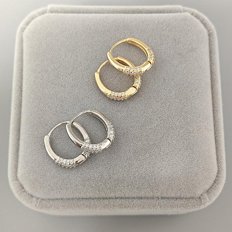 Pendientes de plata 925 de moda transfronteriza europea y americana con incrustaciones de diamantes y circonitas en forma de círculo minimalistas.