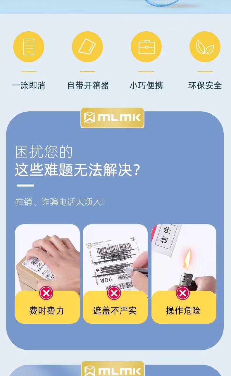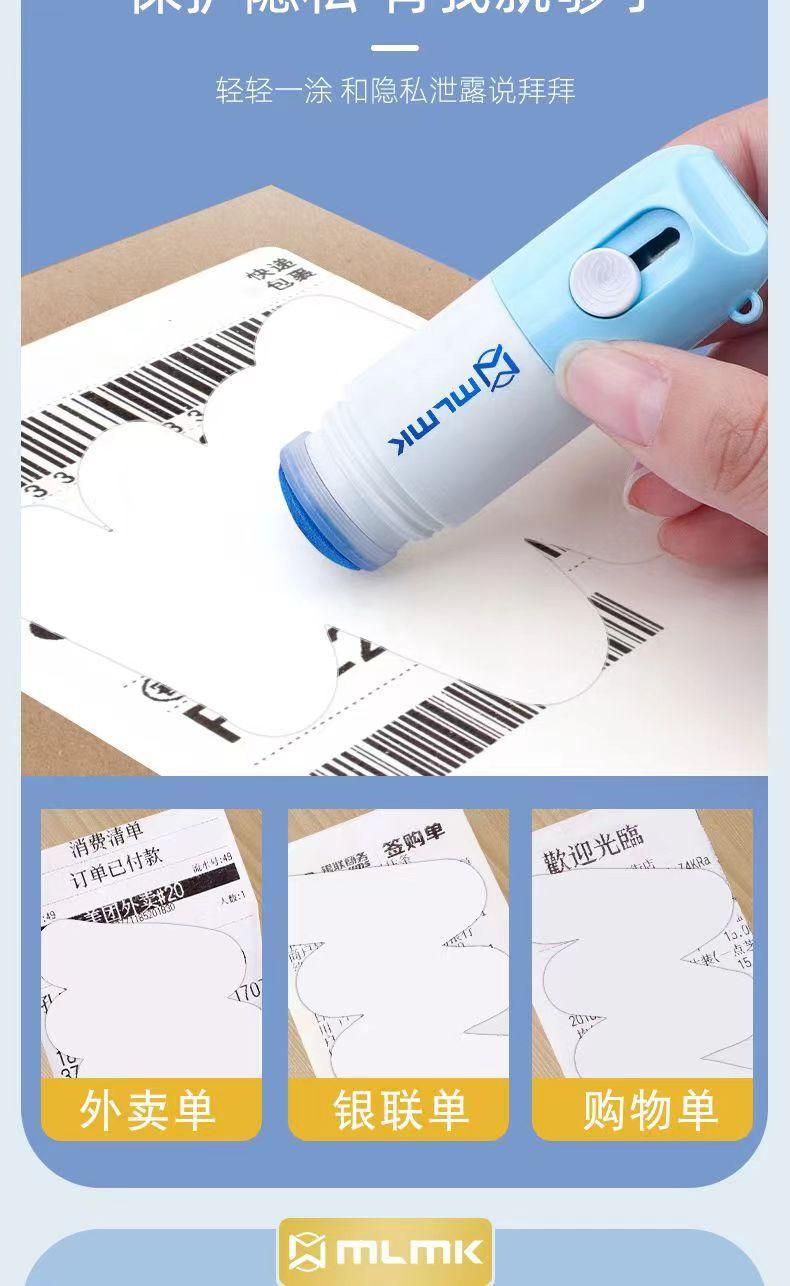 Corrector líquido integrado aplicador express eliminador papel térmico privacidad eliminación de escritura a mano cubierta anti-goteo