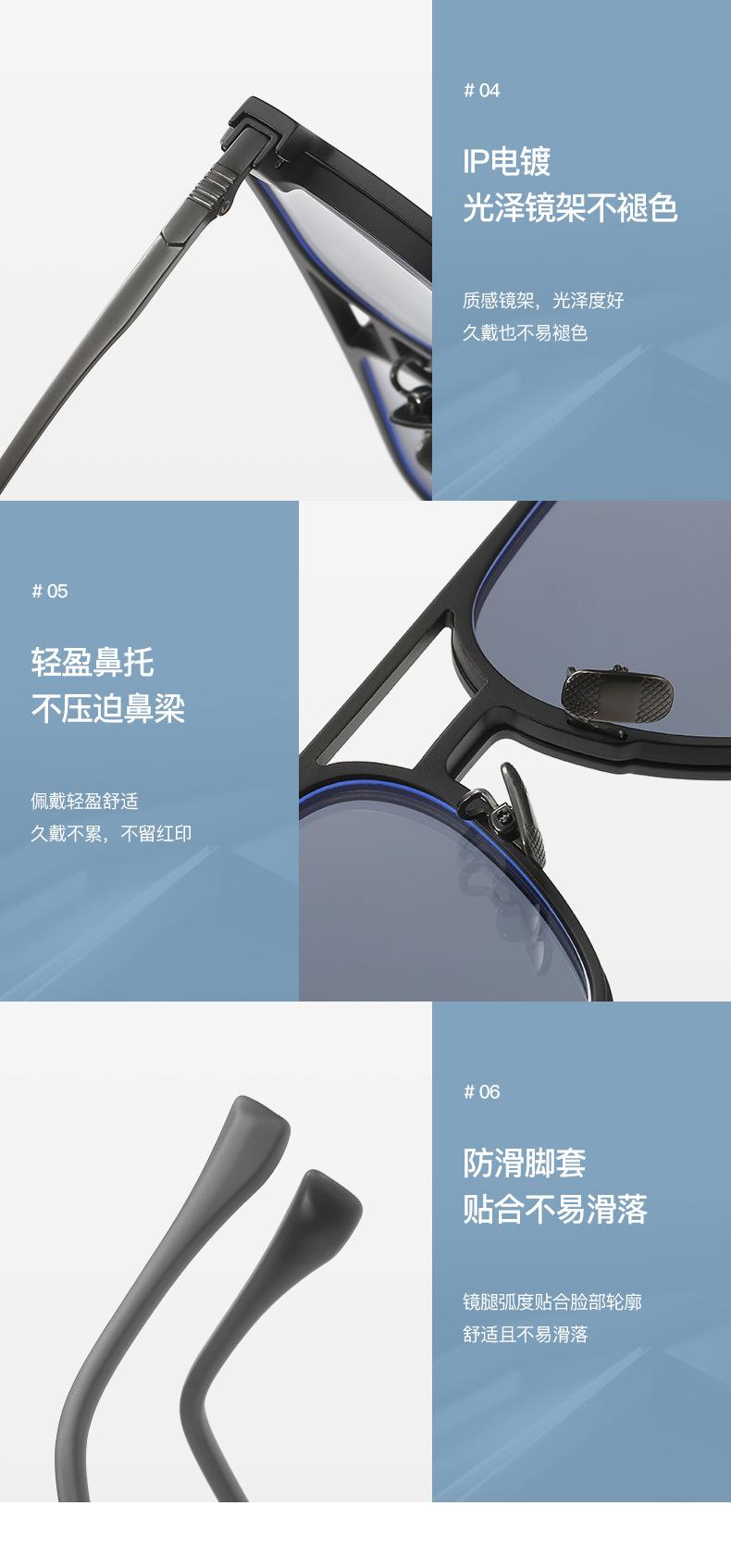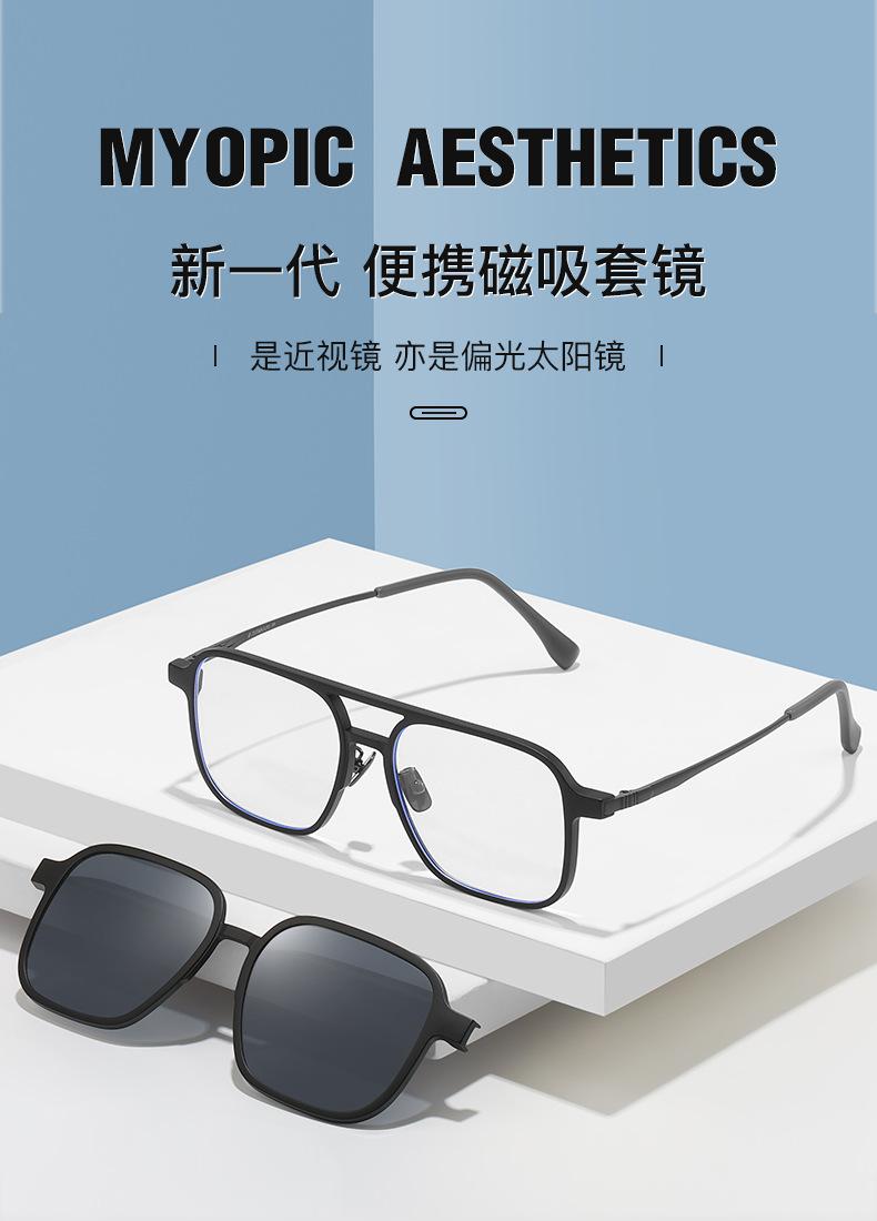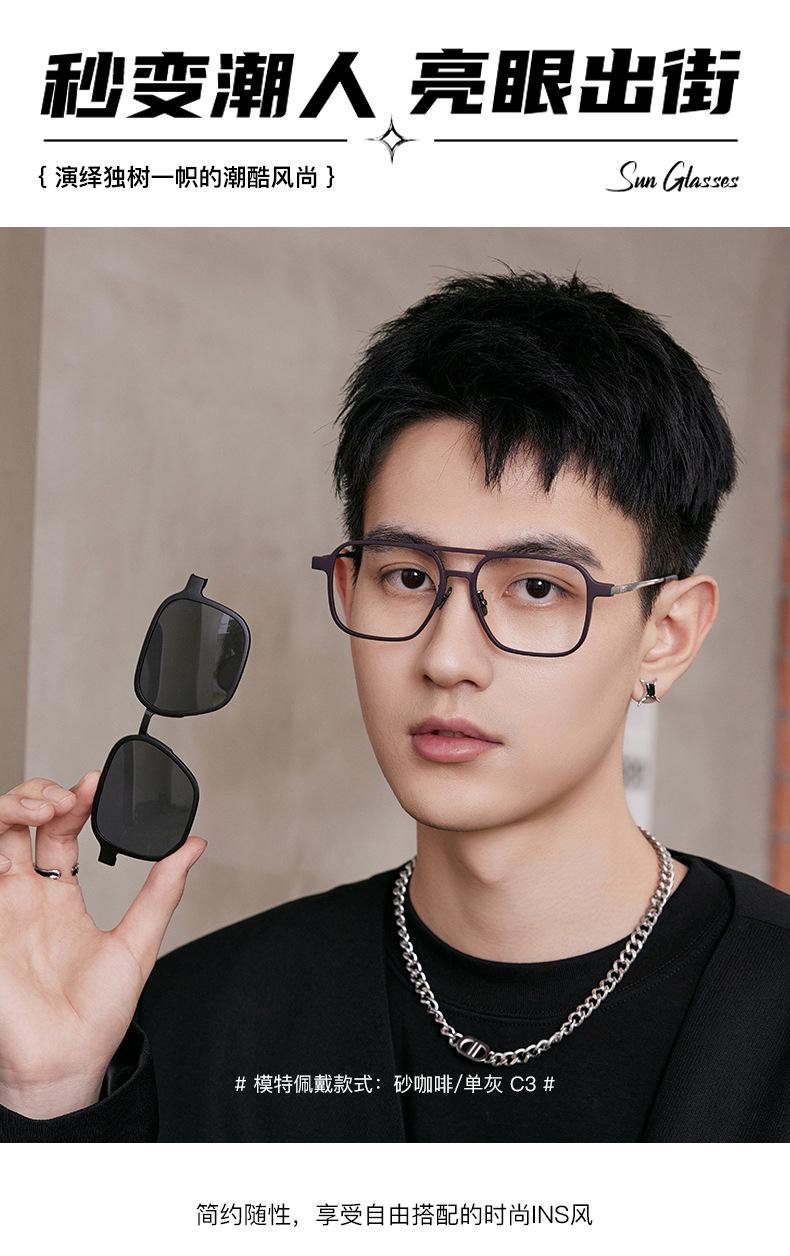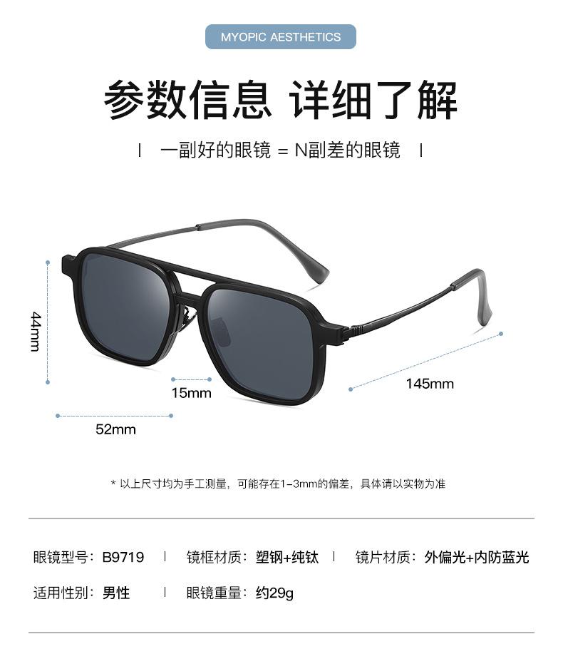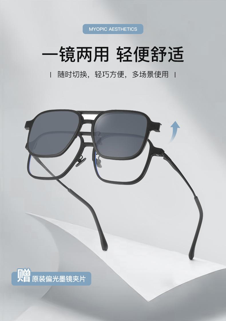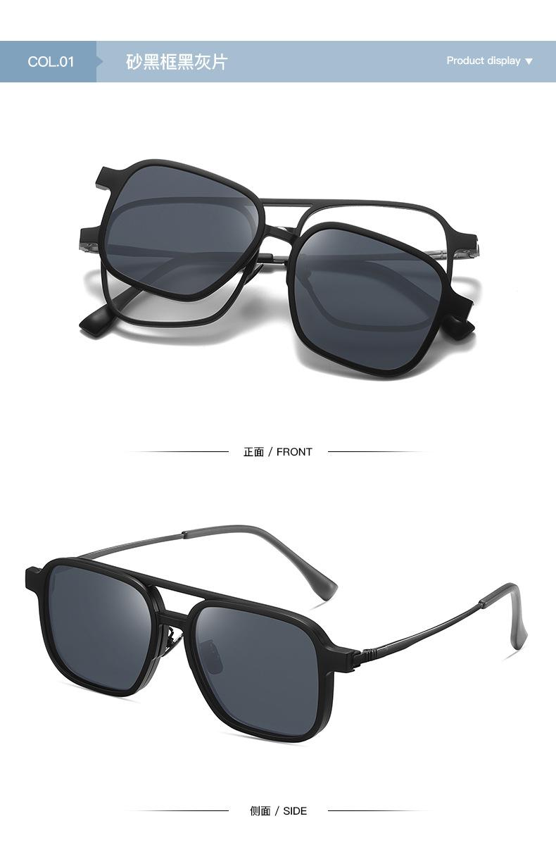 Gafas de sol para hombre con montura de titanio de acero plástico, gafas de sol polarizadas para conducir al por mayor, gafas anti-luz azul, juego de gafas dos en uno de succión magnética