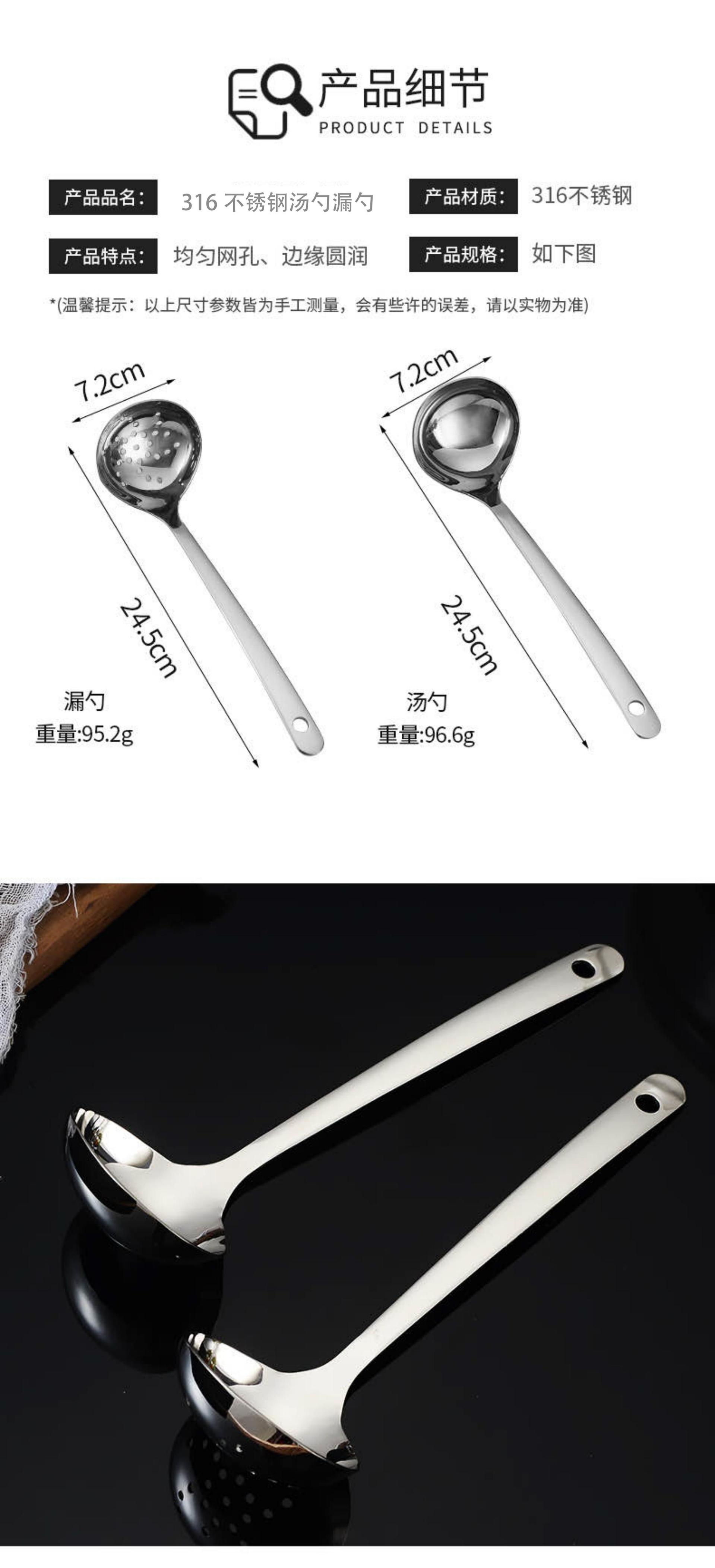 316 medium spoon, 316 medium soup drain, 316 large spoon, 316 large colander, 316 small spoon, 316 small colander