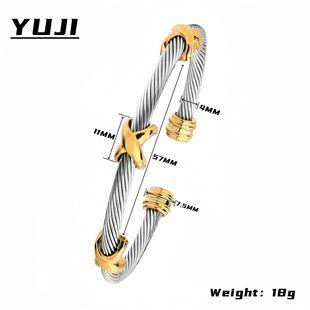 | Pulsera de acero inoxidable con personalidad de acero de titanio y alambre de acero trenzado de 4 mm de apertura, versátil, al por mayor, para mujer, estilo europeo y americano |